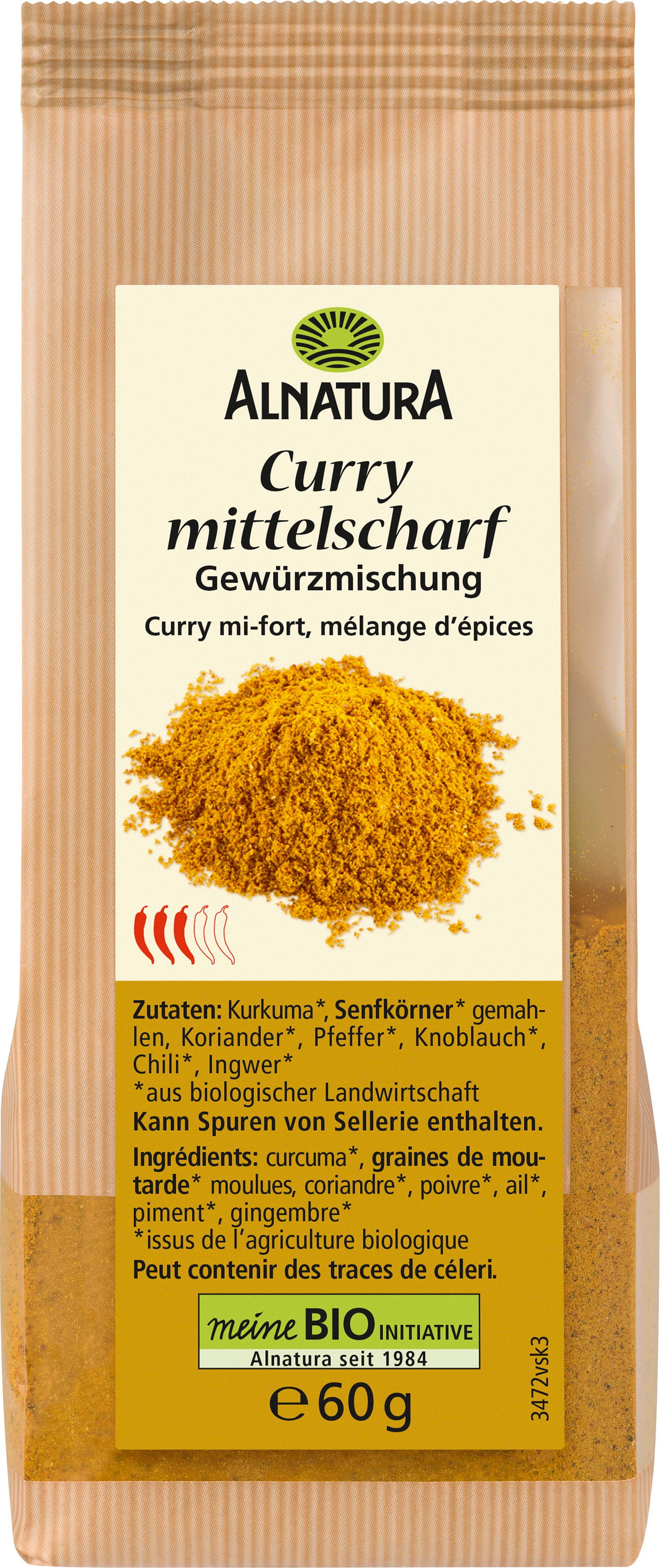 Das Alnatura Bio Curry mittelscharf besteht aus Kurkuma, gemahlenen Senfkörnern, Koriander und weiteren ausgewählten Zutaten. Diese mittelscharfe Gewürzmischung eignet sich hervorragend für Gerichte mit Kokosmilch, passt aber auch gut zu Geflügel und Reisgerichten.