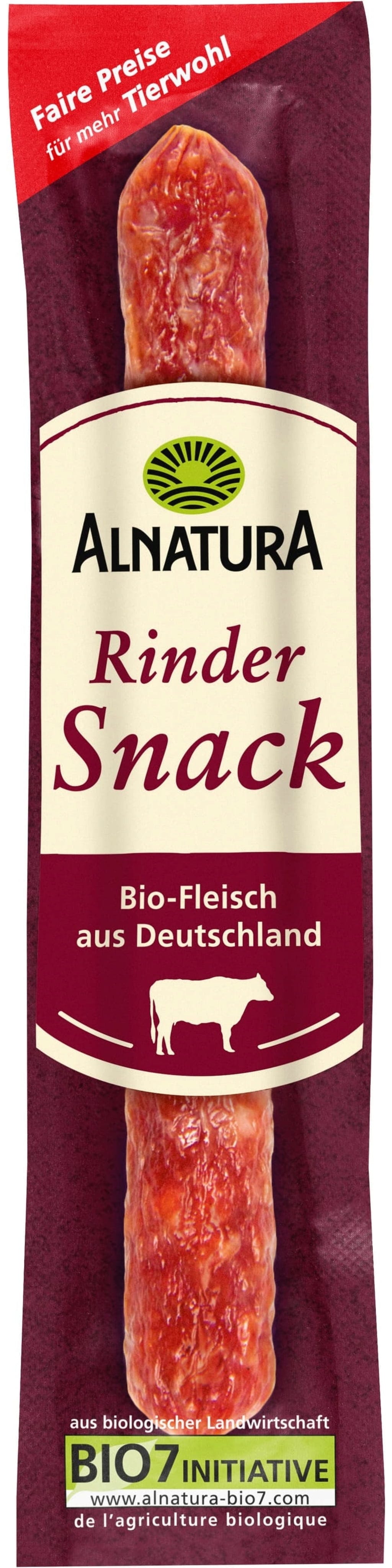 Herzhaft, fein geräuchert und mild gewürzt: Der Alnatura Rinder-Salamisnack ist ideal für den kleinen Hunger zwischendurch. Das Fleisch stammt ausschließlich von deutschen Höfen, die auf wesensgemäße Tierhaltung setzen. Alle Zutaten kommen aus Bio-Landbau.