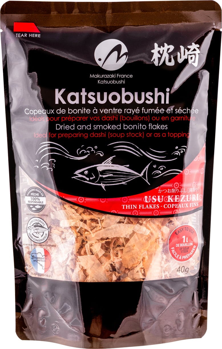 Diese dünnen Katsuobushi werden nach traditionellem Verfahren in Frankreich hergestellt und sind reich an Umami. Sie eignen sich sowohl für klassische Brühen als auch als Topping auf Takoyaki, Okonomiyaki und vielem mehr.
