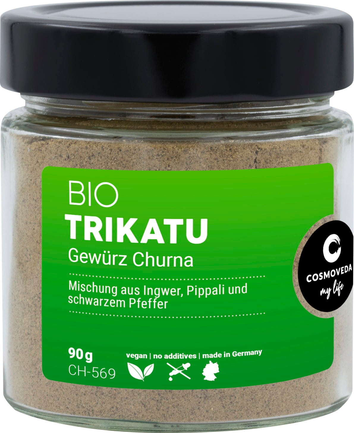Bio Trikatu Churna beinhaltet eine Mischung aus schwarzem und Langem Pfeffer (Piper nigrum und Piper longum) und Ingwer (Zingiber officinale). Diese werden fein und schonend unter 40° C vermahlen und nach traditioneller Weise vermischt.