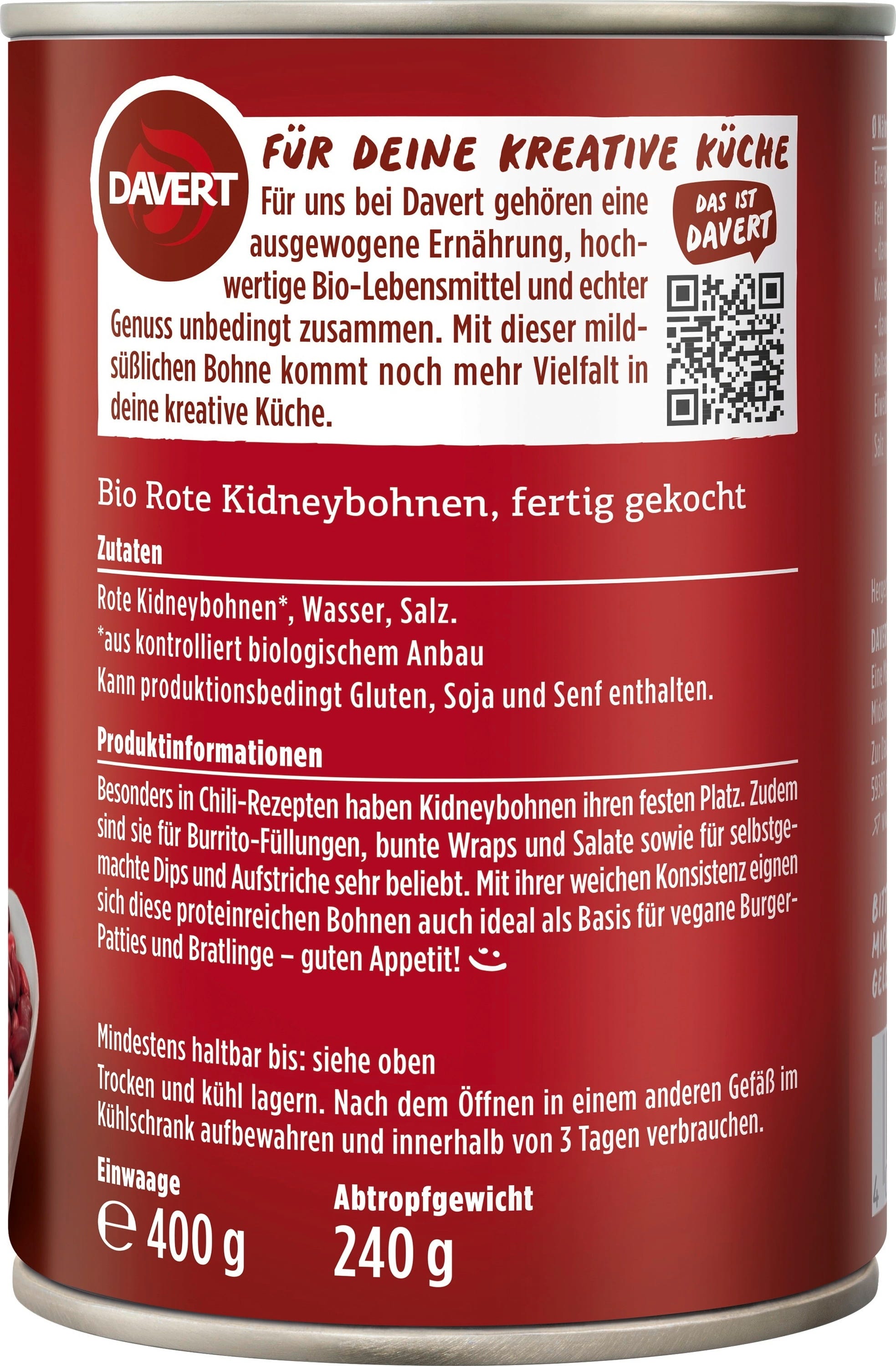 Kein Chili ohne sie! Diese Bio-Kidneybohnen bestechen durch ihre tiefrote Farbe und ihren mild-süßlichen, leicht mehligen Kern. Dank ihrer weichen Konsistenz sind sie nicht nur die Stars in Burritos und bunten Wraps, sondern auch die perfekte Basis für cremige Dips oder selbstgemachte Burger-Patties.