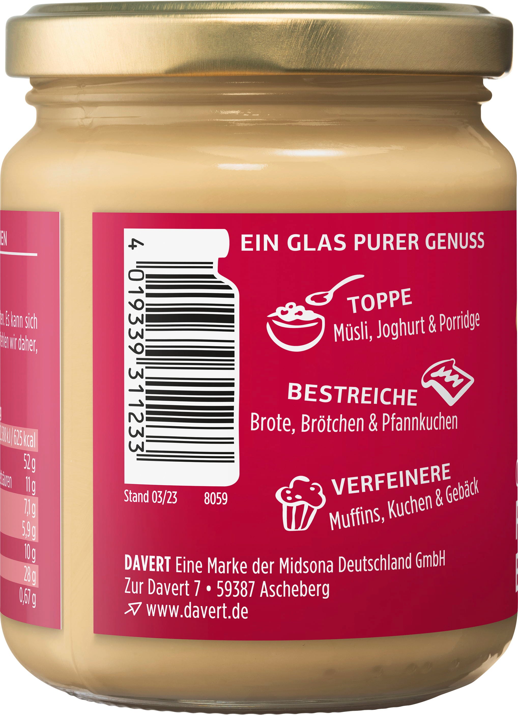 | Eigenschaften: | frei von Gluten, frei von Zuckerzusatz, frei von Palmöl |