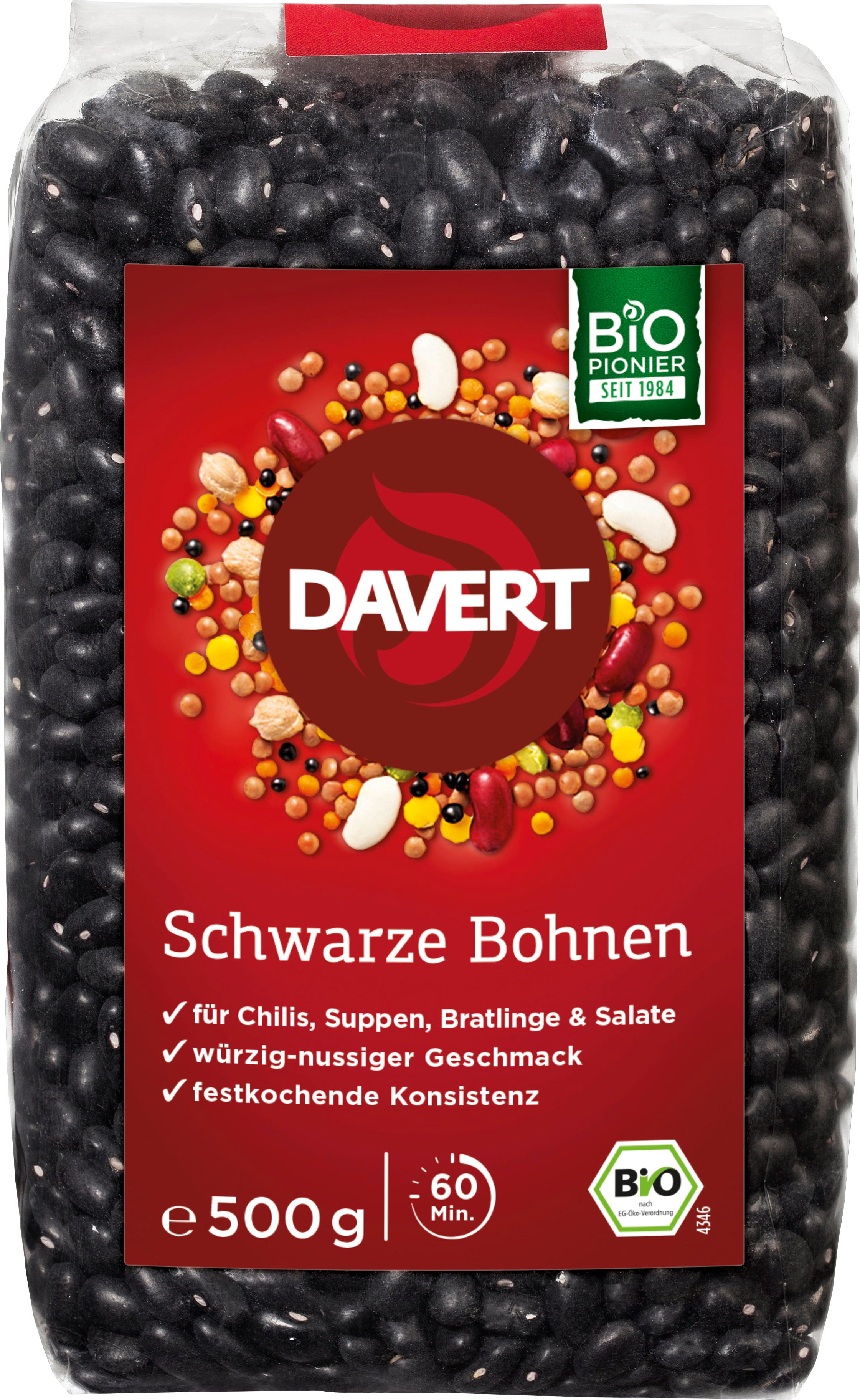 Davert Bio Schwarze Bohnen, 500 g