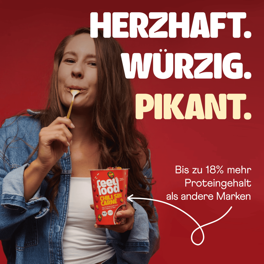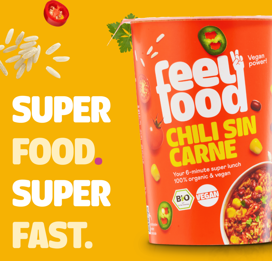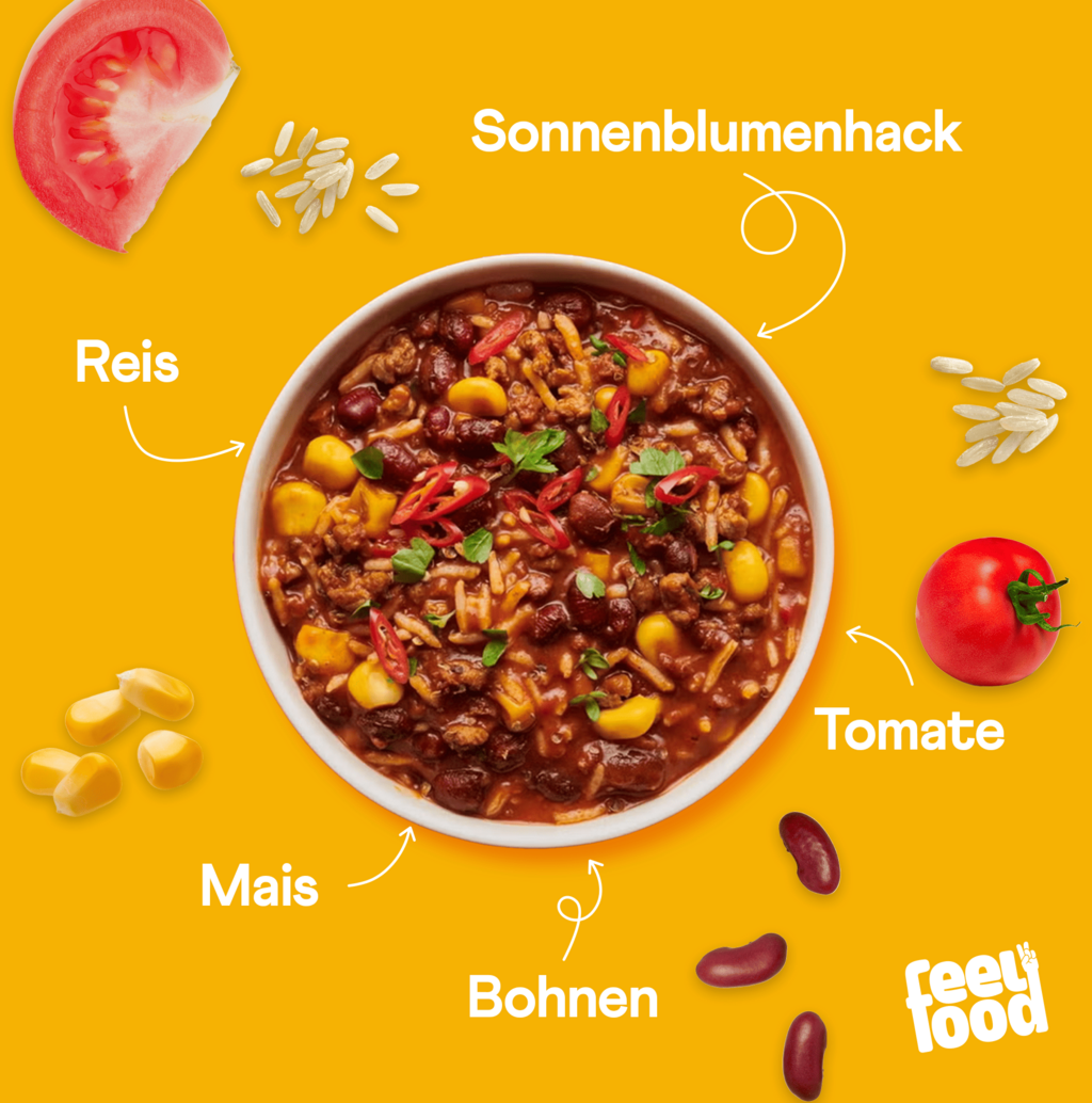 Doch wir gehen weiter. Für unser feelfood® Chili Sin Carne kam – der Name verrät’s – nicht der Fleischwolf, sondern unser Superfood-Filter zum Einsatz. Denn hier erhältst du das Beste des mexikanischen Klassikers in vegan, bio und instant!