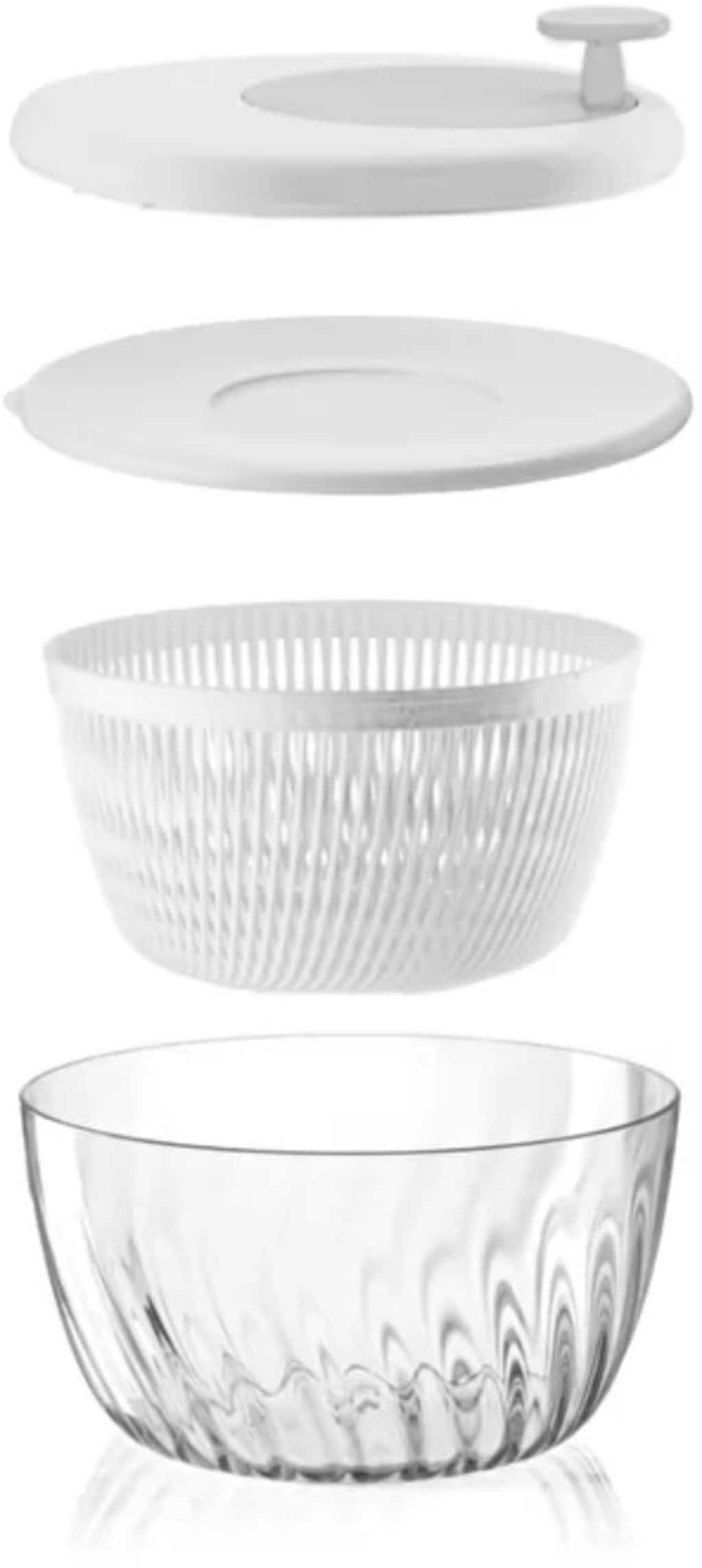 - 4-teiliges Set, bestehend aus Salatschüssel, Schleuderkorb, Deckel mit Kurbel & Frischhaltedeckel