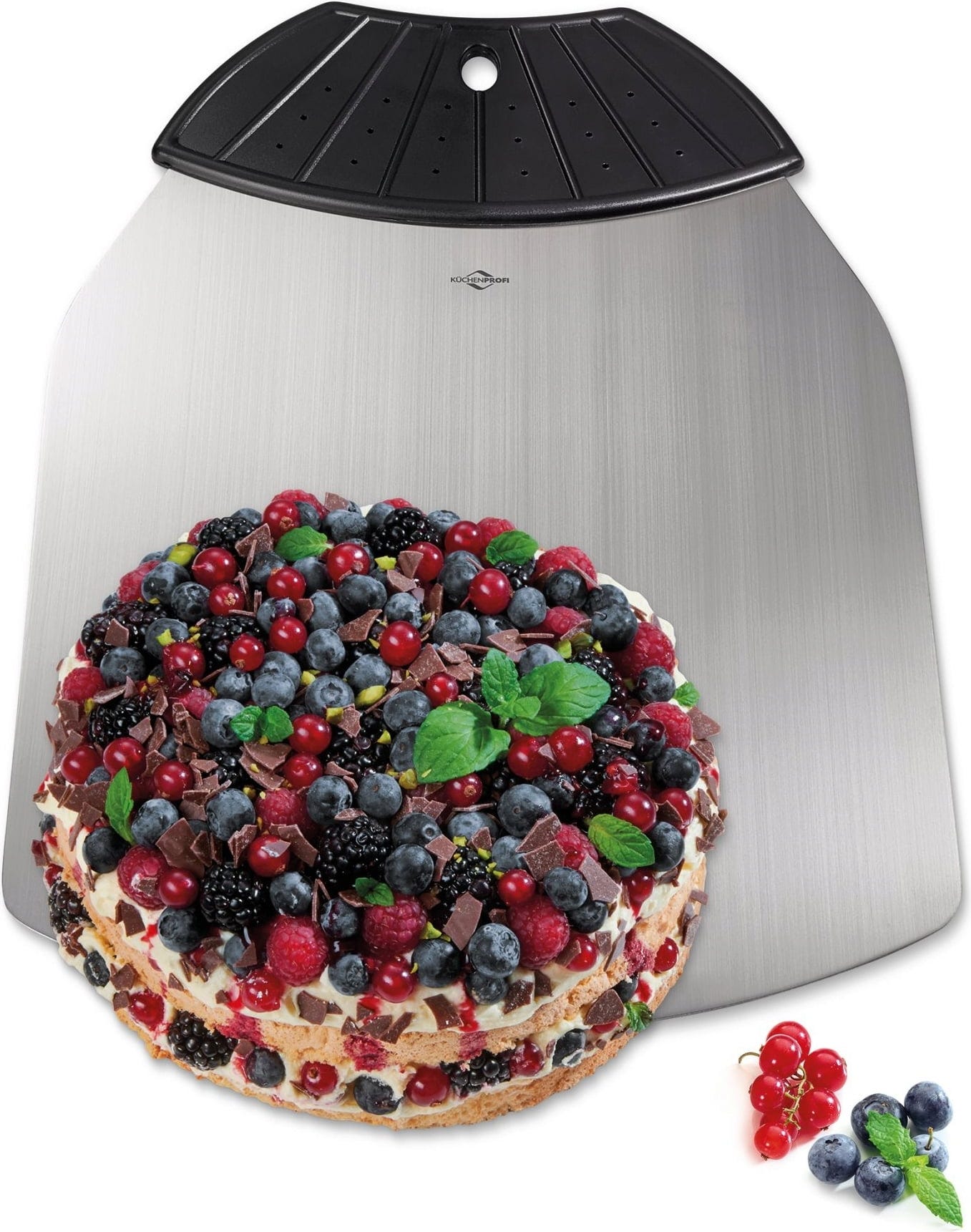 Dieser Küchenhelfer ist einfach unverzichtbar und wunderbar vielseitig. Die hochwertige Edelstahlplatte mit extra dünner Kante gleitet mühelos unter Torten, Kuchen, Pizza und Kekse, um sie aus der Form oder vom Blech zu lösen.