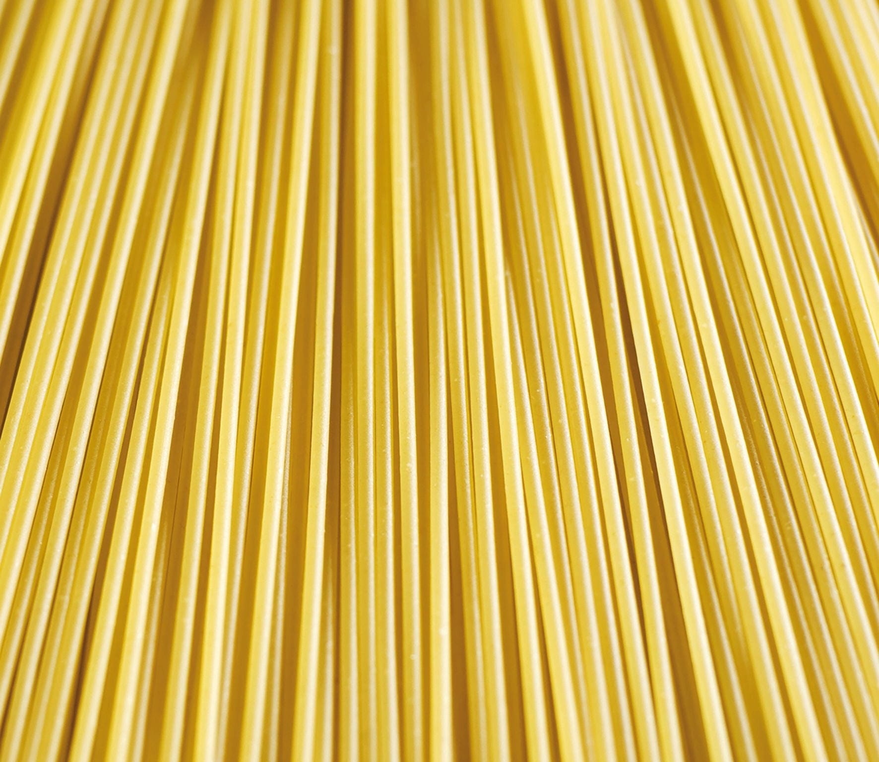 So einfach geht's: Nudelteig dünn ausrollen, so daß die Arbeitsfläche leicht durchscheint. Anschließend mit gleichmäßigem Druck über den Teig rollen und die Nudelfäden vorsichtig voneinander lösen.