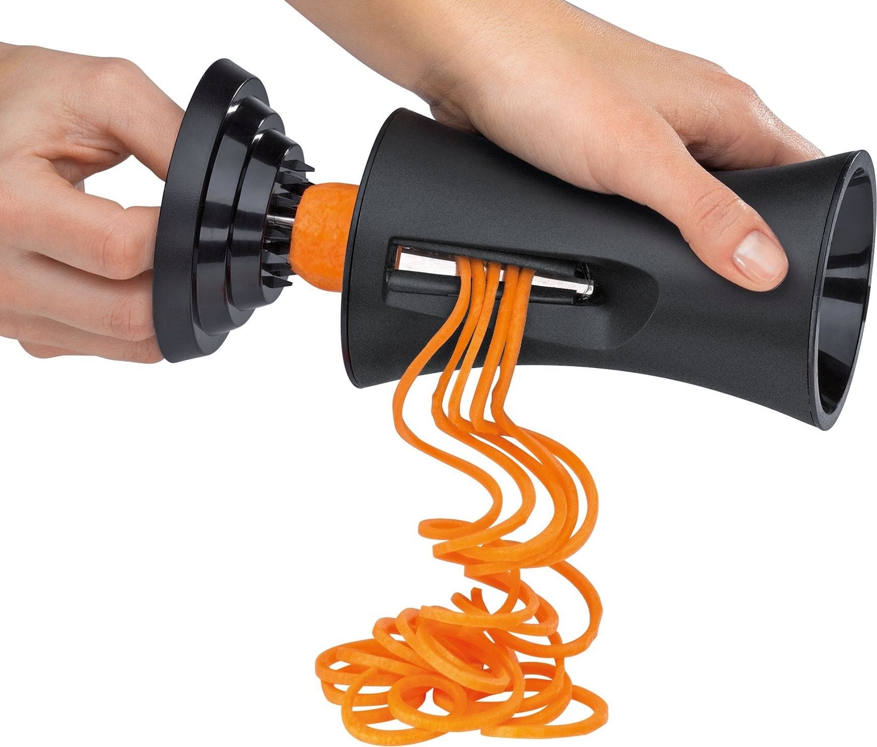 Die extrascharfen Messer des praktischen Spiralschneiders von Küchenprofi verwandeln Karotten, Zucchini, Rettich, Gurken & Co. im Handumdrehen in "Spaghetti". Die ideale Alternative zu herkömmlichen Nudeln mit der Extra-Portion Vitaminen.