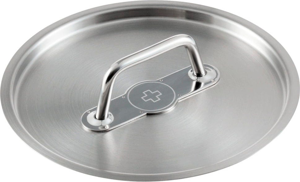 Der aus hochwertigem, matt gebürstetem Edelstahl gefertigte Deckel ergänzt die Kochgeschirrserie MONTREUX von Kuhn-Rikon. Die dekorative Prägung mit dem Schweizer Kreuz komplettiert den stilvollen Gesamteindruck