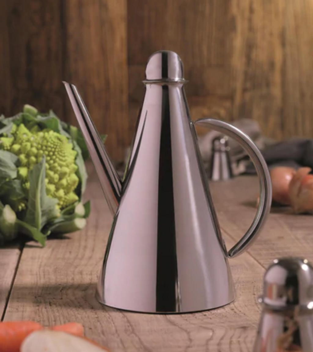Eine Ölkanne hat den Riesenvorteil, dass die "Patzerei" damit auf ein Minimum reduziert werden kann. Mit einer Flasche ist es fast unmöglich, den letzten Tropfen nicht auf dem Tischtuch zu verlieren - deshalb auch oft der obligatorische Serviettenring um den Flaschenhals. Mit dieser eleganten und pflegeleichten Edelstahlkanne ist das nicht mehr notwendig. Und man kann sie ruhig zur Selbstbedienung auf den Tisch stellen.