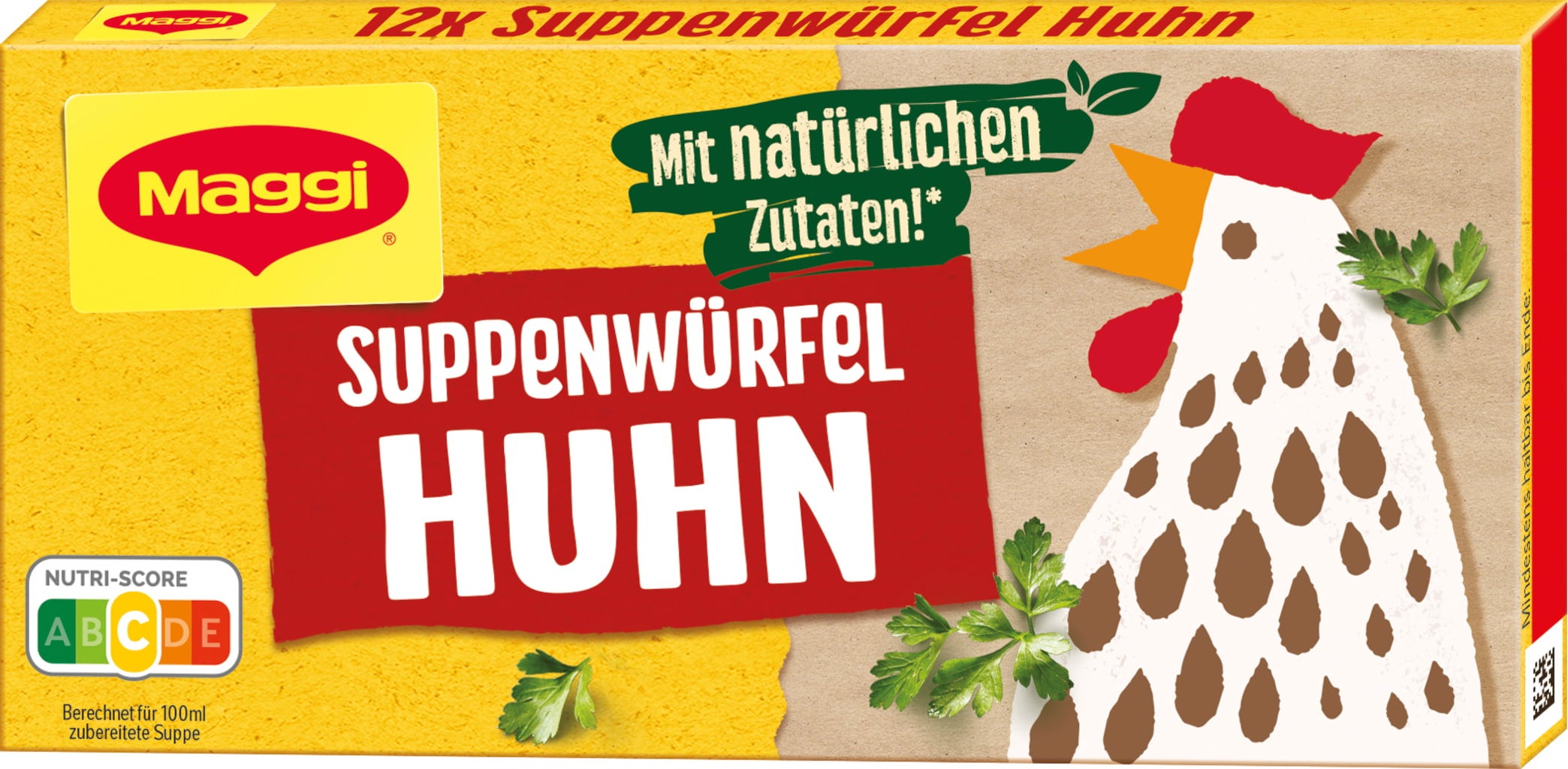 Die Maggi Suppenwürfel Huhn liefern dir mit wenigen Handgriffen eine aromatische Hühnerbrühe — perfekt als Basis für Suppe oder zum Würzen von Geflügelgerichten. Jeder Würfel bringt kräftigen Geschmack von Huhn, ausgewählten Gewürzen und Kräutern in deine Küche. So gelingt dir eine klassische Hühnersuppe ebenso wie eine geschmackvolle Sauce oder ein deftiges Eintopfgericht. Durch die Portionierung hast du immer genau die richtige Menge parat — ganz ohne Aufwand.