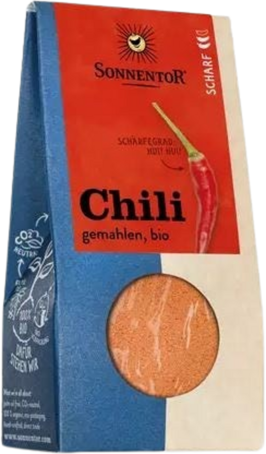 Die Schärfe machts aus und gibt vielen Gerichten erst den richtigen Pepp. Der Scovillewert von Chili gemahlen befindet sich in einem Bereich von 6 von maximal 10 Schärfegraden. Das gemahlene Chili von Sonnentor hat eine kräftig orange-rote Farbe und hat eine feurige Schärfe. Ebenso weißt es einen fruchtigen Duft und eine leicht-süßliche Note auf.