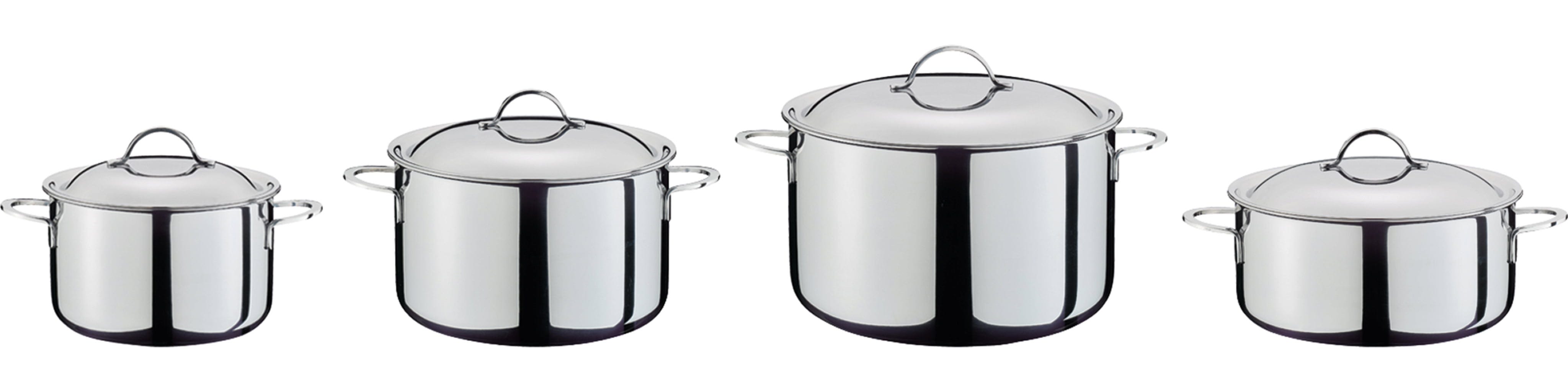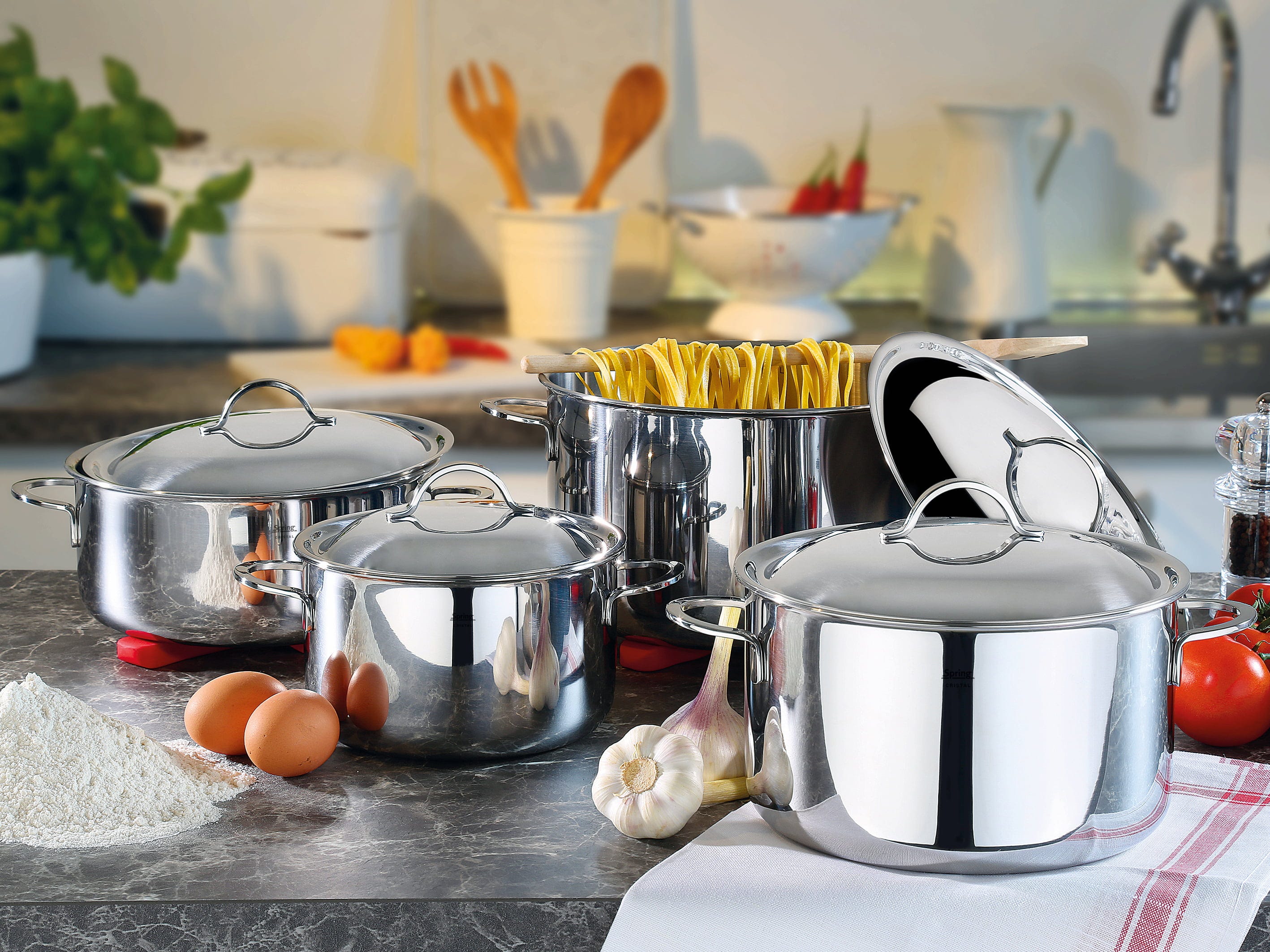 Dank des formschönen, hochglanzpolierten Designs und des angenehm leichten Gewichts macht das Set auch als Serviergeschirr direkt auf dem Tisch eine hervorragende Figur. Der geschlossene Topfrand schützt vor Korrosion und garantiert eine lebenslange Freude an deinem Kochgeschirr. Ob punktgenaues Ausgießen durch den Schüttrand oder das Kochen mit wenig Wasser dank passgenauer Deckel – dieses Set vereint Funktionalität mit echtem Profi-Anspruch!