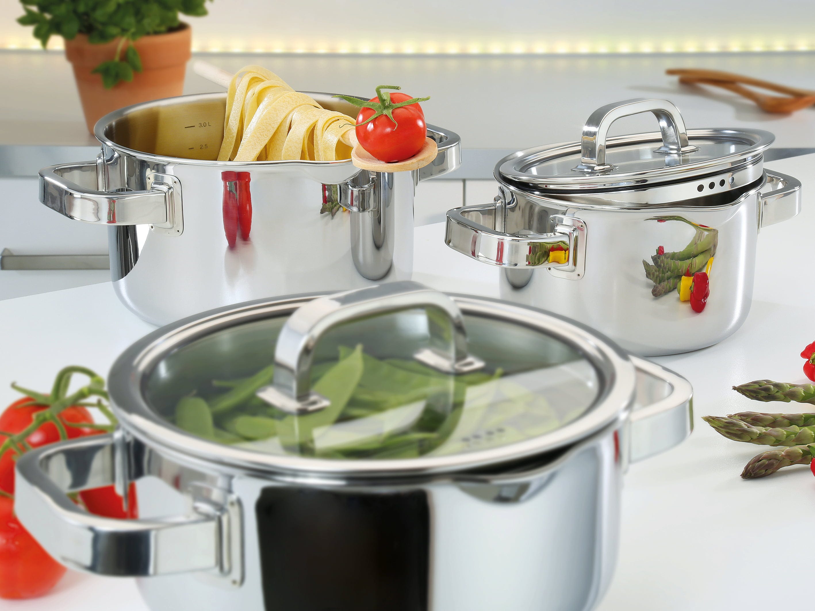 Bist du bereit, deine Kochkünste auf Sterne-Niveau zu heben? Mit der Topf-Serie Finesse2+ von Spring holst du dir echtes Profi-Equipment in die Küche! Das Geheimnis liegt im hochwertigen 5-Lagen-Mehrschichtmaterial: Die Wärme wird nicht nur am Boden gespeichert, sondern blitzschnell bis in die Topfwände geleitet. Das bedeutet für dich: Deine Gerichte garen absolut gleichmäßig, während du gleichzeitig wertvolle Zeit und Energie sparst.
