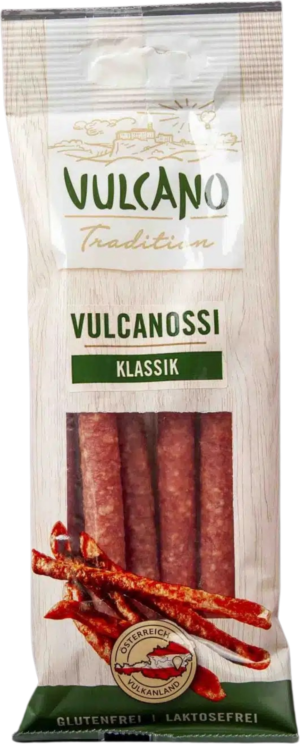 Vulcano Rohwürste werden nur mit bestem Rohfleisch und Speck vom Schwein verarbeitet. Hochwertige Rohstoffe und edle Gewürze mit einem Hauch von Rauch vereinen sich zu einem angenehmen Geschmackserlebnis.