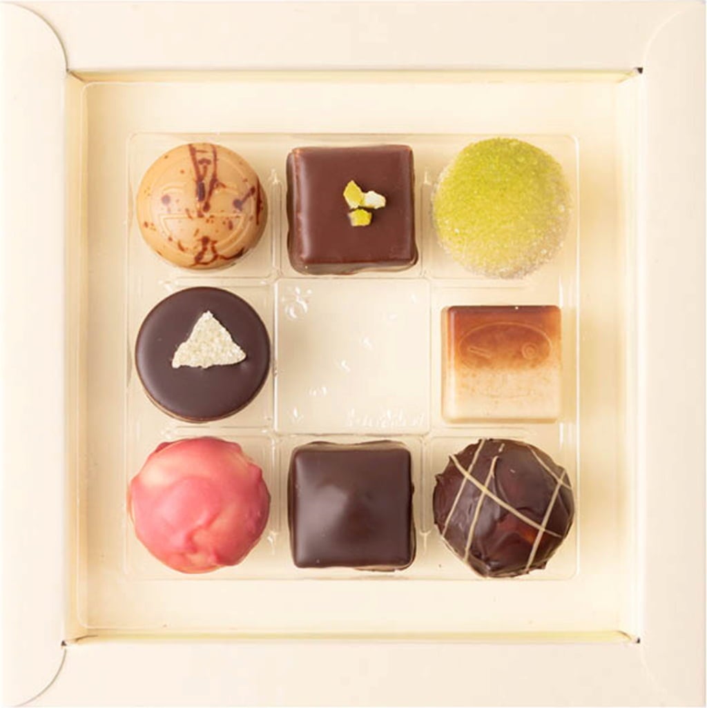 Rohrzucker[1], Kakaobutter[1], Kakaomasse[1], Invertzuckersirup[2], Marzipan[2] (Mandeln[2], Zucker[2], Invertzuckersirup[2]), Vollmilchpulver[2], Butter[2], Vollmilch[2], Schlagobers[2], Magermilchpulver[2], Mandeln[2], Stärkesirup[2], Marc de Champagne[2], Himbeergeist[2], karamellisiertes Milchpulver[2] (Magermilchpulver[2], Zucker[2]), Maracuja gefriergetrocknet[2] (Maltodextrin[2], Maracujasaftkonzentrat[2]), Blutorangenkonzentrat[2], Süßmolkenpulver[2], Magermilch-Joghurtpulver[2], gefriertrocknete Himbeeren[2], Mandelkrokant[2] (Zucker[2], Mandeln[2], Glucose[2], Butter[2], Sonnenblumenlecithine[3]), Rosenwasser[2], Orangen getrocknet[2] (Orangensaftkonzentrat[2], Orangenfruchtfleisch[2]), Überzugsmittel[2] (Glukosesirup[2], Gummi Arabicum (E 414)[4], Sonnenblumenöl[2]), Vollrohrzucker[1], Mandelöl[2], Sonnenblumenöl[2], Zitronensaftkonzentrat[2], Cashewkerne[1], Mangopüree[2], Sojalecithine (E322)[3], Karamellzucker[2] (Karamellisierter Zucker[2], Maltodextrin[2]), Vanilleschotenpulver[1], Steinsalz, Tonkabohnenpulver[2], Zitronenfruchtpulver[2] (Zitronensaftkonzentrat[2], Maisstärke[2], Zucker[2]), Kokos-Fruchtpulver[2] (Kokosnusspaste[2], Kokosmilch[2], Kokosmehl[2]), Reisdrinkpulver[2] (Reis[2], Sonnenblumenöl[2], Salz), Kokosraspel[1], Kurkuma[2], Zimt[1], Blutorangenöl[2], Rosenblüten[2], Sonnenblumenlecithine[3]