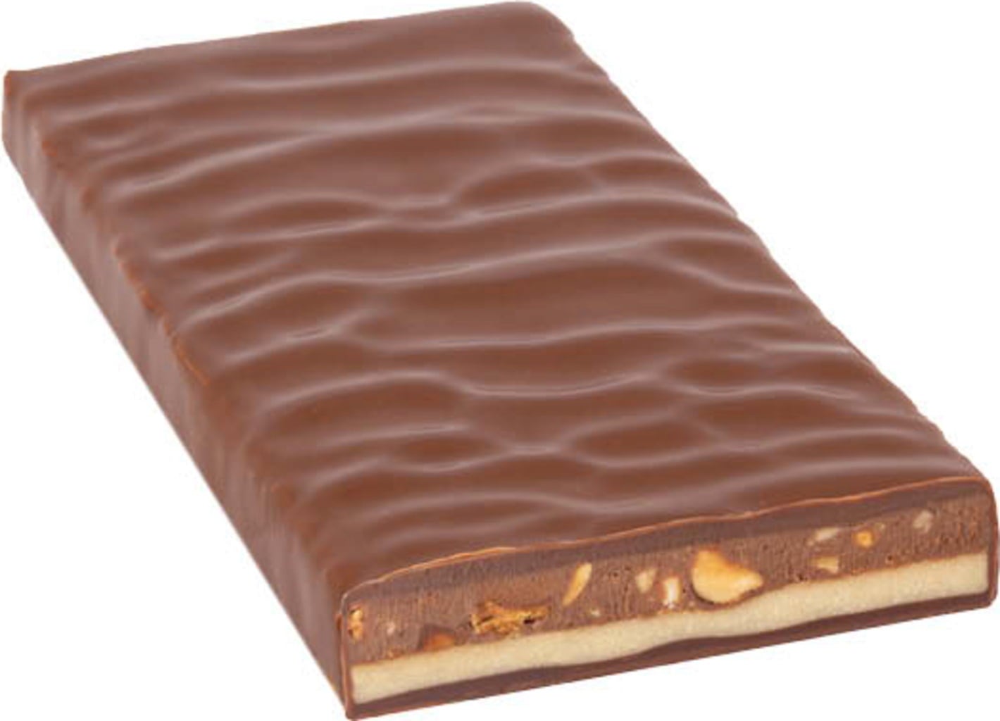 Diese Kreation ist ein mutiges Geschmacksabenteuer. Die Hauptrolle spielt eine "Hirnschicht" aus blanchiertem und karamellisiertem Schweinehirn, kombiniert mit Butter, selbst gemachtem Eierlikör, verfeinert mit Birnenbrand und Mandelnougat. Eine weniger süße, edelweiße Schokolade rundet diese ungewöhnliche Füllung ab. Dazu kommt eine Schicht aus zart schmelzendem Haselnussnougat und klein gehackten Stückchen von Cashew, Haselnuss und Mandel. Ein verrückter Genuss, eingehüllt in feine Milchschokolade!