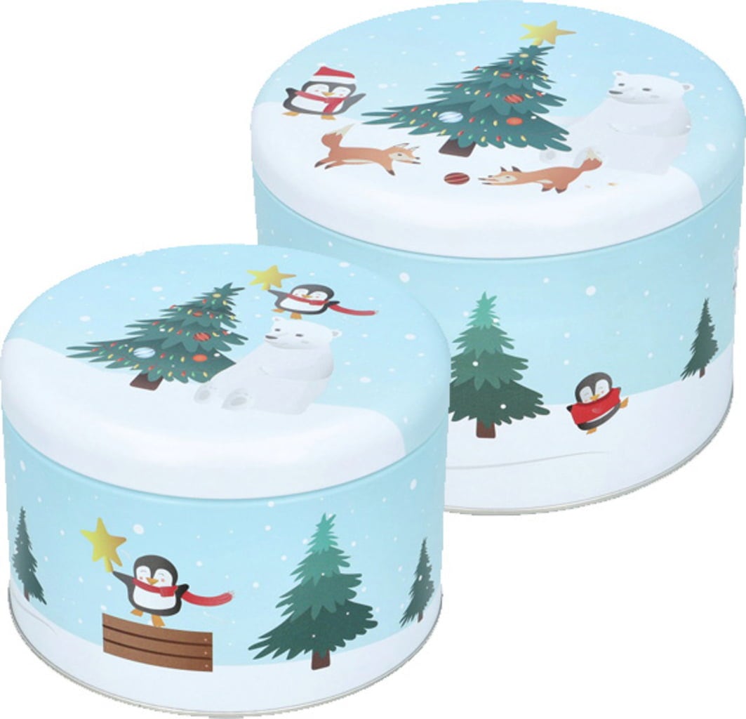 2 Grandes Boîtes à Biscuits Rondes "Les animaux décorent le sapin"