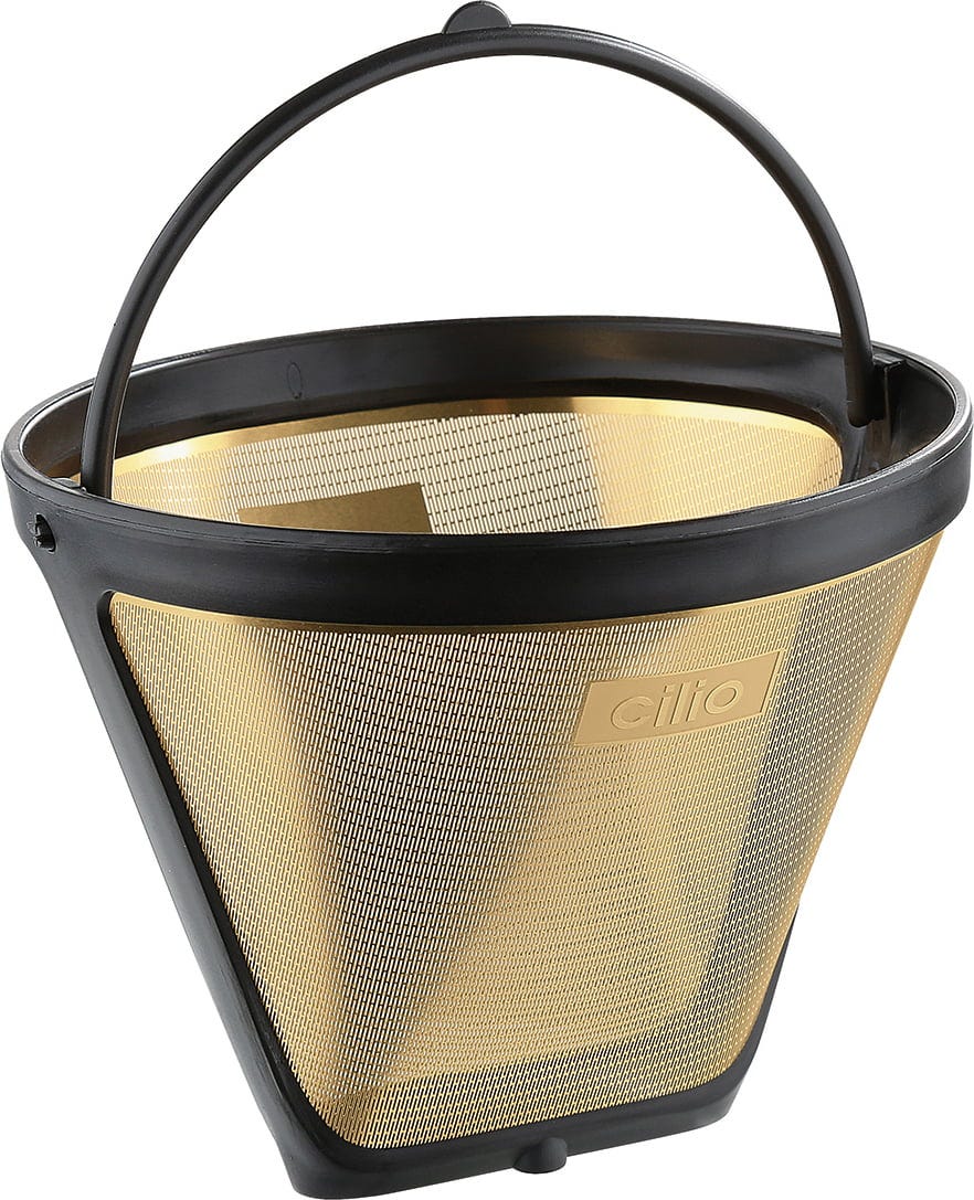 Dégustez toute la richesse aromatique de votre café préféré grâce au Filtre Permanent pour Café GOLD de cilio. Contrairement aux filtres en papier qui absorbent les huiles essentielles, son maillage en acier inoxydable plaqué or laisse passer tous les arômes. Son design astucieux avec poignée permet une insertion et un retrait propres dans la cafetière.