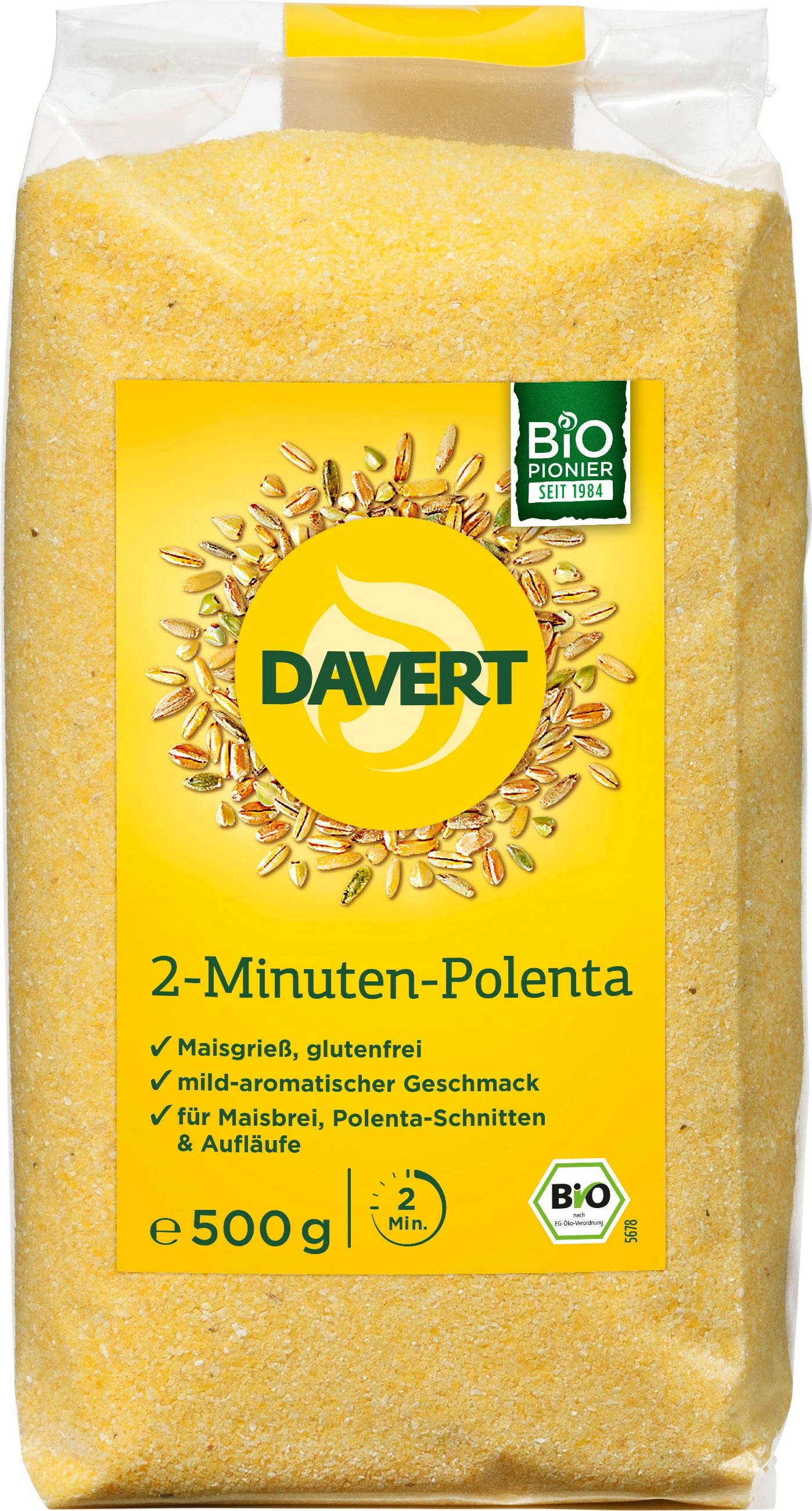 Davert Polenta Instantanée Bio en 2 Minutes, 500 g