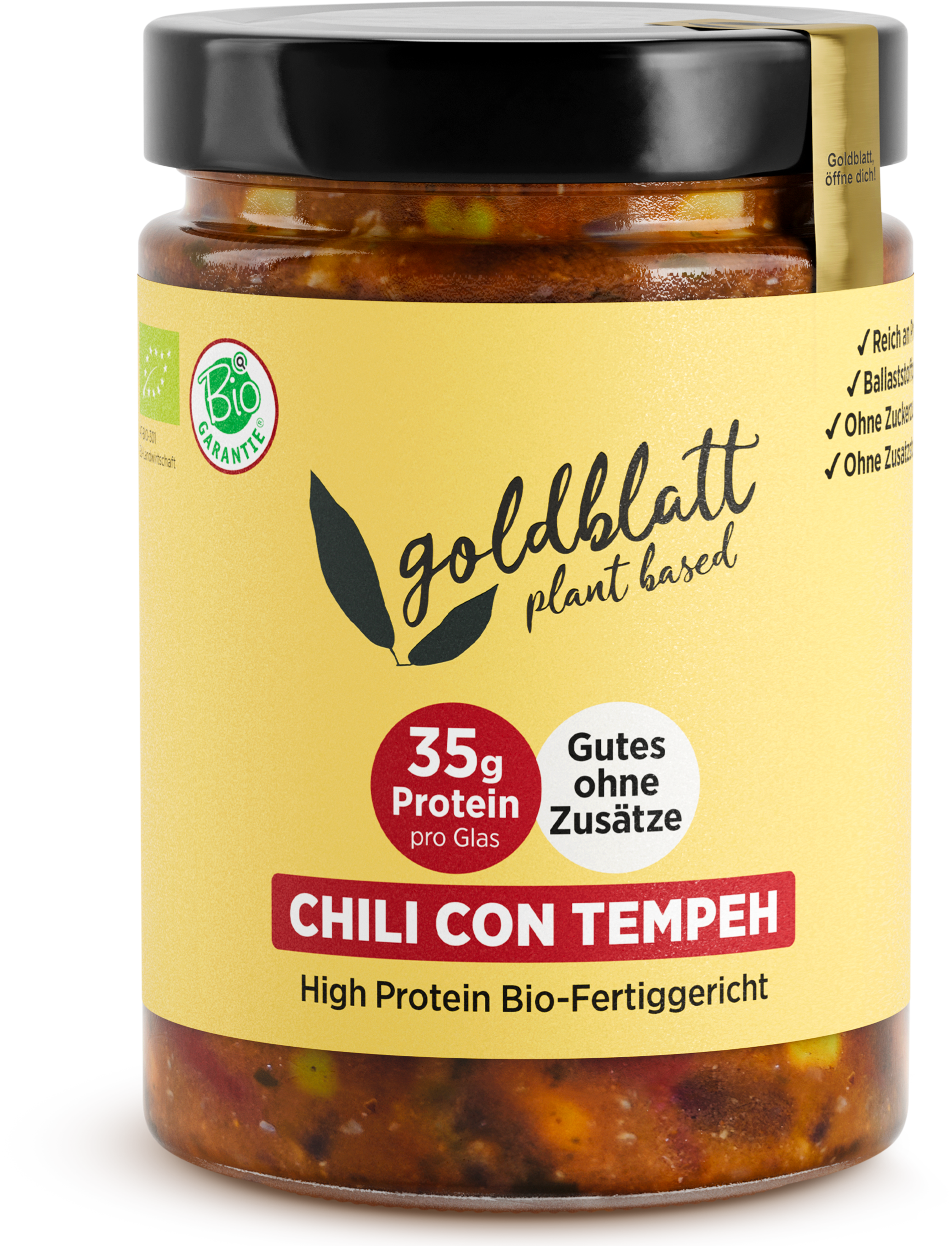 Goldblatt Plat Cuisiné Bio High Protein – Chili au Tempeh, 500 g