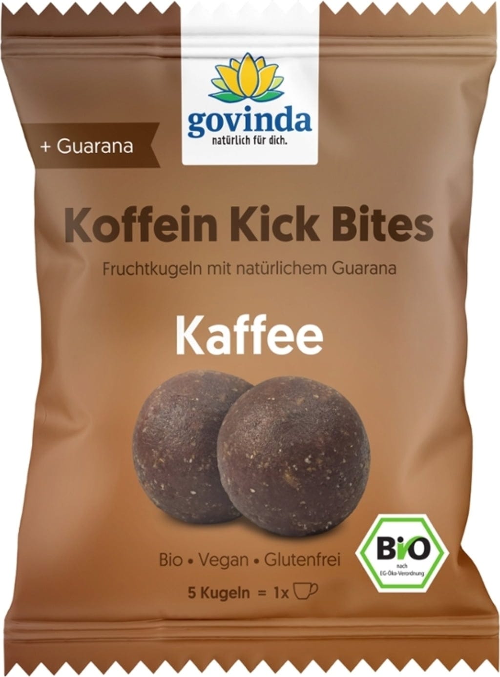 Les Koffein Kick Bites Café de Govinda associent la douceur naturelle des dattes et du souchet à l’arôme intense de l’extrait de café. Enrichies de noisettes concassées et de véritable guarana, ces bouchées offrent une saveur prononcée en qualité bio. Véganes et sans gluten, elles constituent un en-cas responsable au format pratique, sans additifs artificiels.