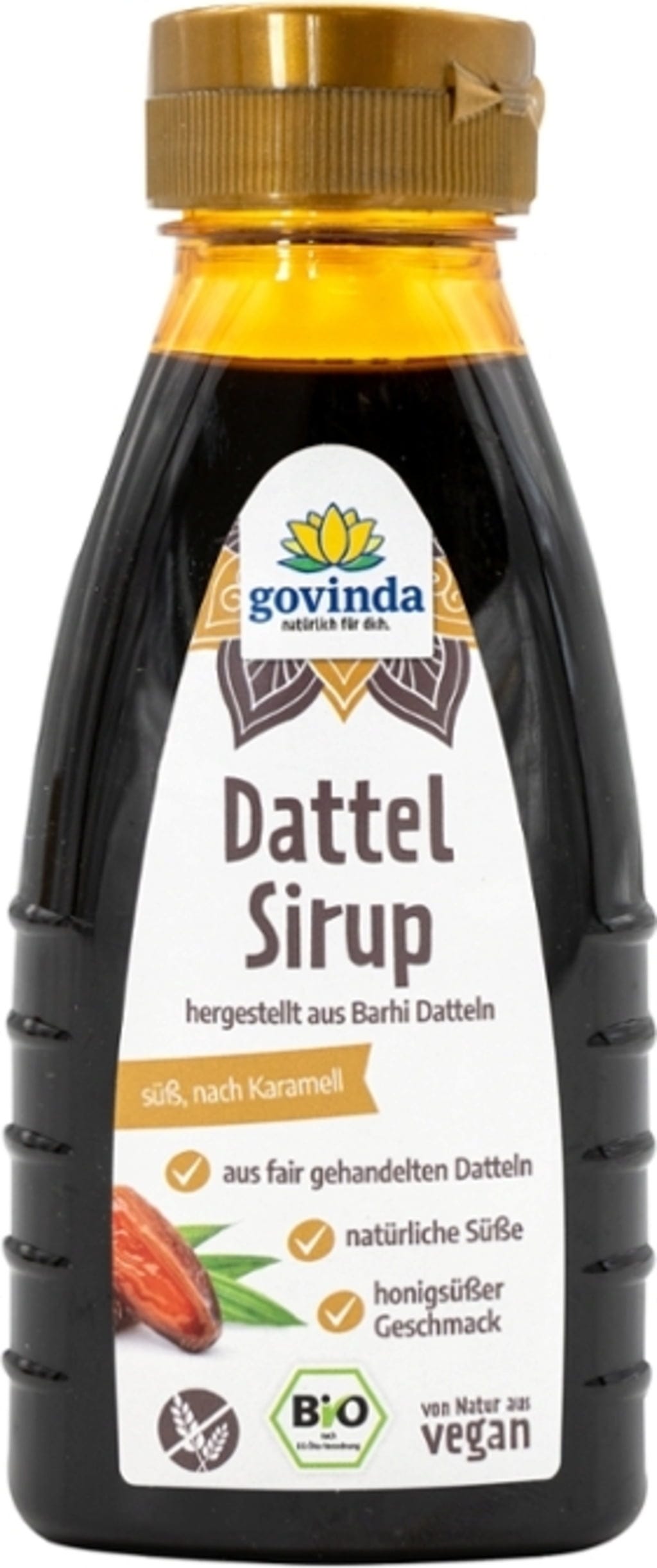 Le sirop de dattes bio de Govinda est élaboré à partir de dattes Barhi aromatiques et séduit par sa texture dorée. Alternative 100 % végétale au miel ou au sirop d’érable, il sublime les desserts et les préparations ayurvédiques d’une délicate note de caramel. Un produit naturel pur, sans additifs.