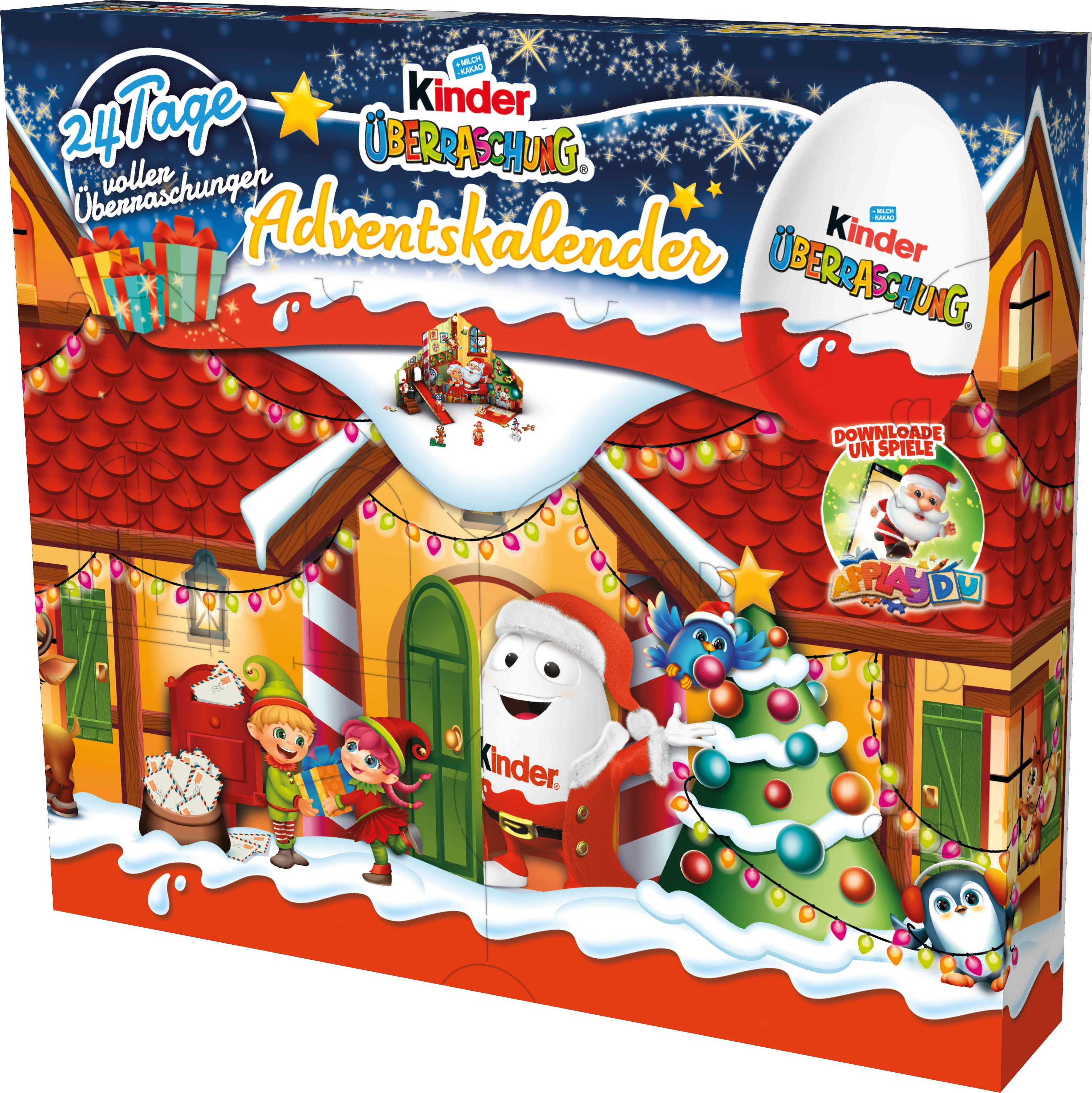 Imaginez la joie que vos enfants prendront à "déc-ouvrir" chaque jour une nouvelle surprise ! Dans ce magnifique calendrier de l'Avent, les 24 fenêtres renferment chacune un œuf en chocolat avec un jouet de Noël à l'intérieur. Pour rendre chaque jour qui vous sépare de Noël, plus magique et amusant !