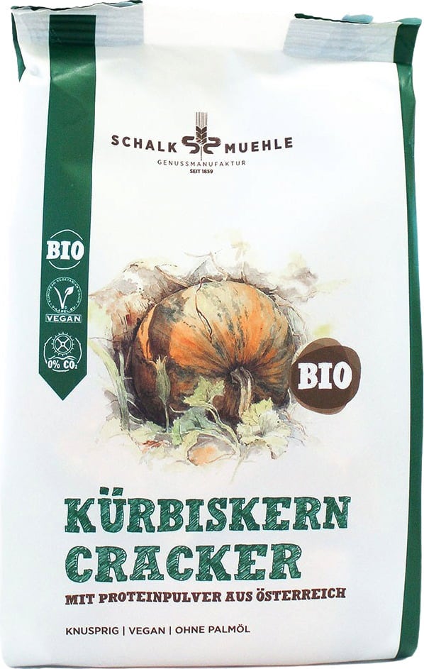 Une collation parfaite pour ceux qui suivent un régime végétalien ou pour ceux qui font particulièrement attention à leur alimentation. Les crackers à l'épeautre et aux pépins de courge de Schalk Mühle sont fabriqués avec les meilleures matières premières et sont riches en protéines, sans huile de palme ni lactose et constituent une collation savoureuse et croustillante à déguster à tout moment de la journée. Ils sont également excellents comme substitut du pain avec des salades et des crudités ou à déguster avec des sauces dip et des tartinades. Les crackers sont raffinés avec du sel de mer et de l'huile d'olive.
