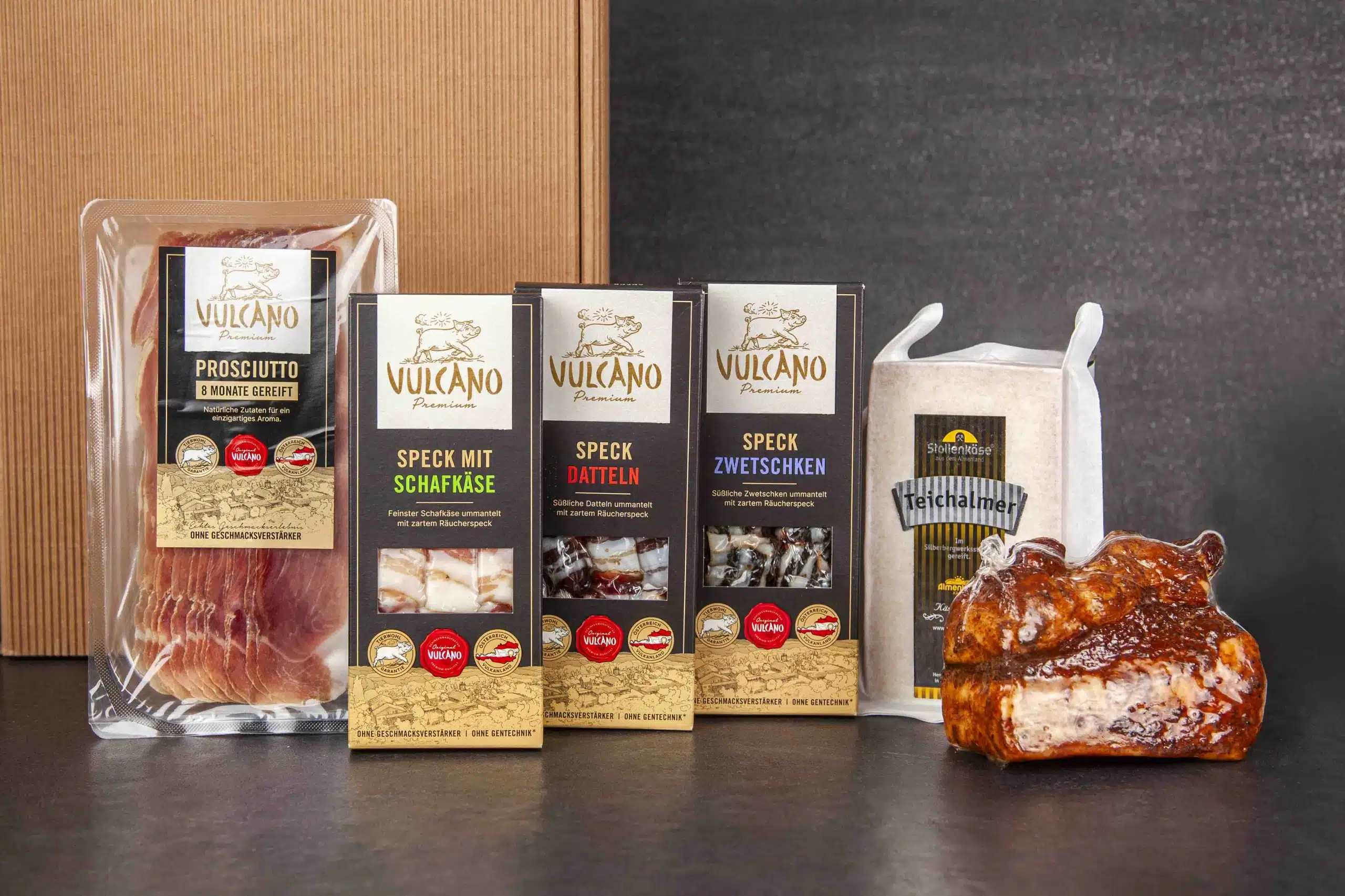 Avec le coffret raclette Vulcano, votre soirée raclette devient un véritable moment d’exception ! Parfait pour les froides soirées d’hiver ou les occasions spéciales, ce coffret réunit les plus fines spécialités de la maison Vulcano, harmonieusement assorties pour porter votre raclette à un nouveau niveau de plaisir. Du fromage de brebis enveloppé de lard, aux dattes au lard relevées, jusqu’au fromage fondant à souhait – chaque gourmet y trouvera son bonheur.