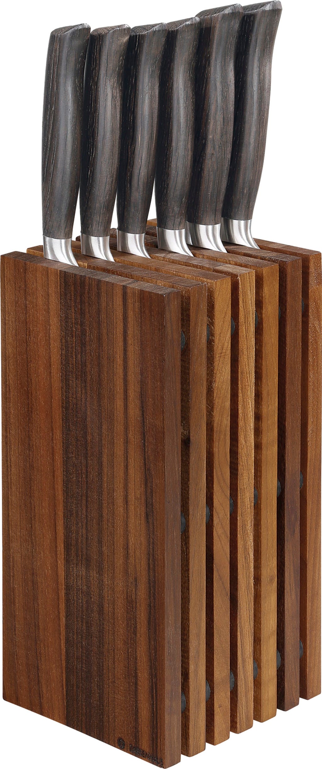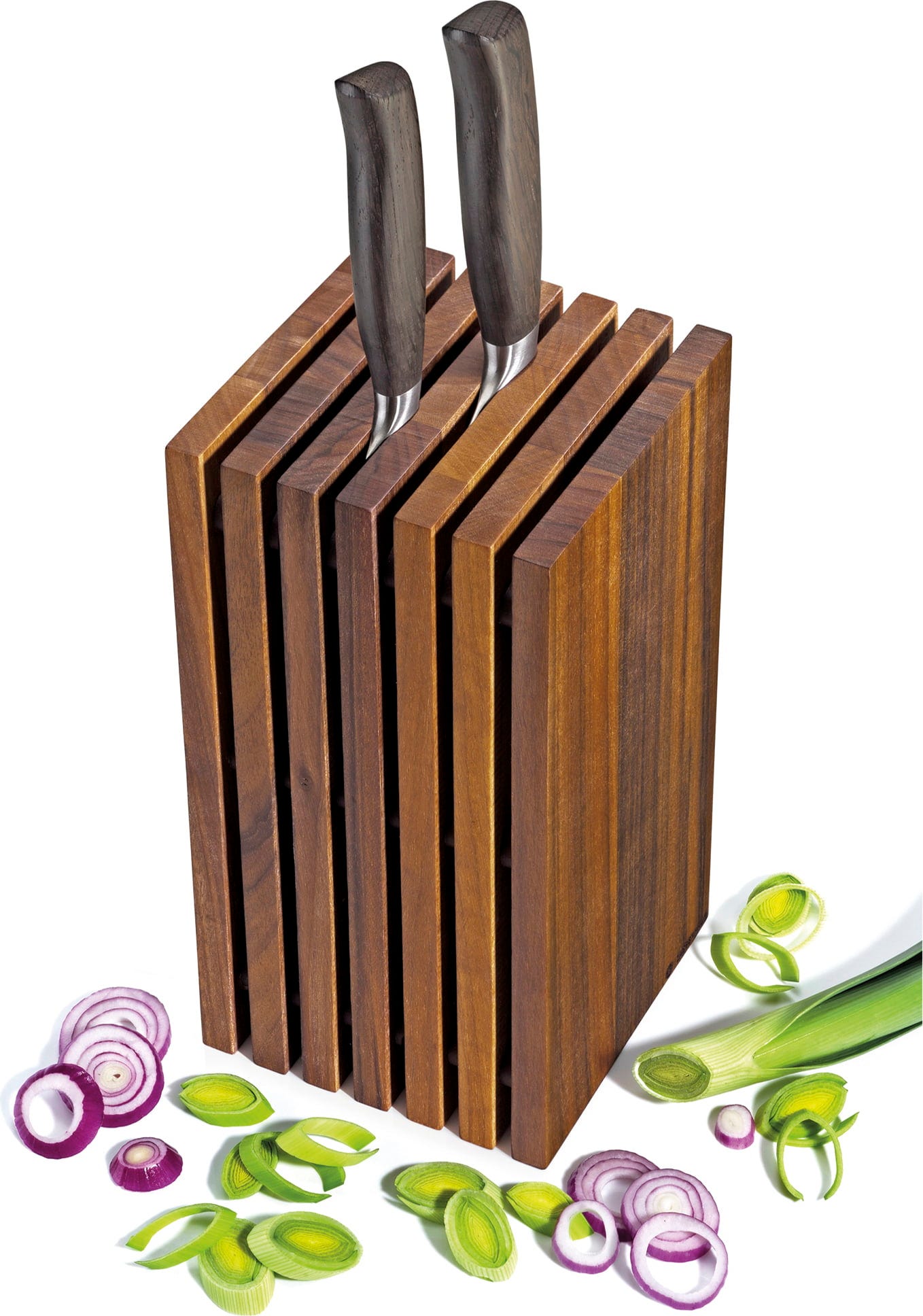 Ce bloc à couteaux de Zassenhaus allie avec raffinement design et fonctionnalité. Sa forme compacte assure de l’ordre sur votre plan de travail, tandis que le noyer foncé apporte une touche haut de gamme à votre cuisine. Tous vos couteaux y trouvent leur place en toute sécurité. Un indispensable pour celles et ceux qui aiment le style et la qualité.