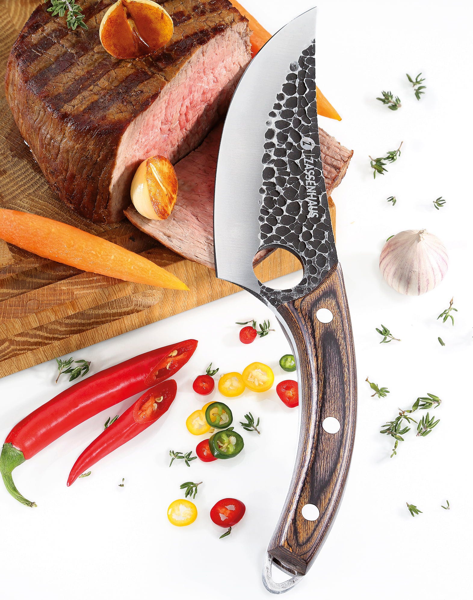 Le Couteau de Chef RANGER de Zassenhaus est conçu pour l’aventure, en cuisine comme dans la nature. Sa lame tranchante et faite main vient à bout de la viande, des légumes, et même du bois pour le feu de camp. Le manche en bois de pakka avec anneau offre un contrôle parfait, et l’étui en cuir avec passant permet un transport sûr. Un compagnon robuste pour les amateurs de cuisine et d’activités outdoor.