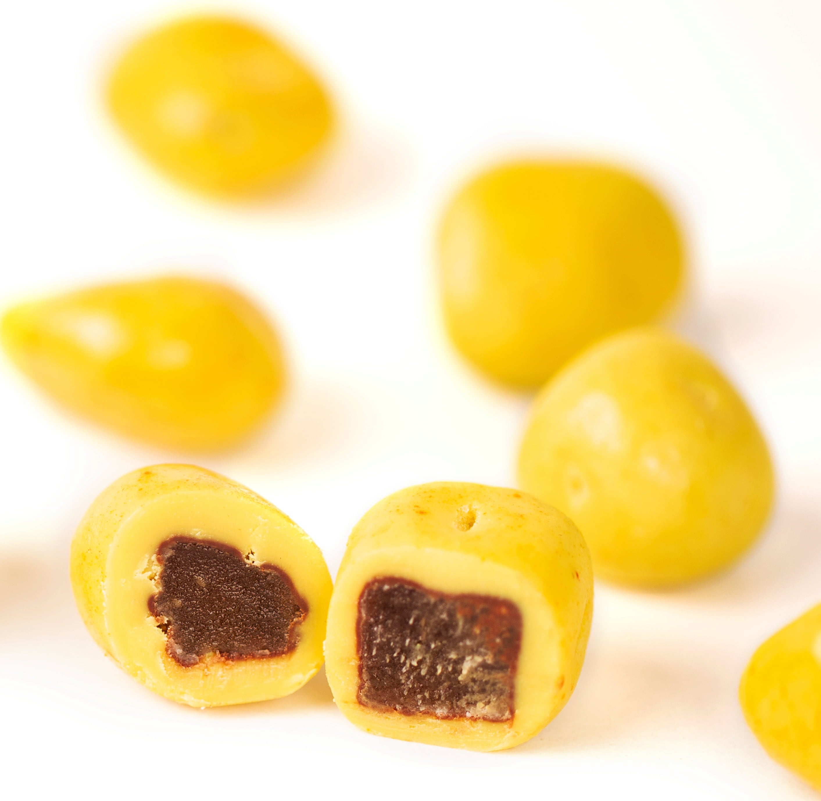 Une véritable explosion de saveurs : tout d'abord, un enrobage avec un mélange d'épices ayurvédiques, puis une couche sucrée de chocolat à la noix de coco et enfin, au centre, du gingembre australien, sucré, exotique et délicieusement épicé. Une combinaison qui non seulement est délicieuse, mais qui revigore également les sens.