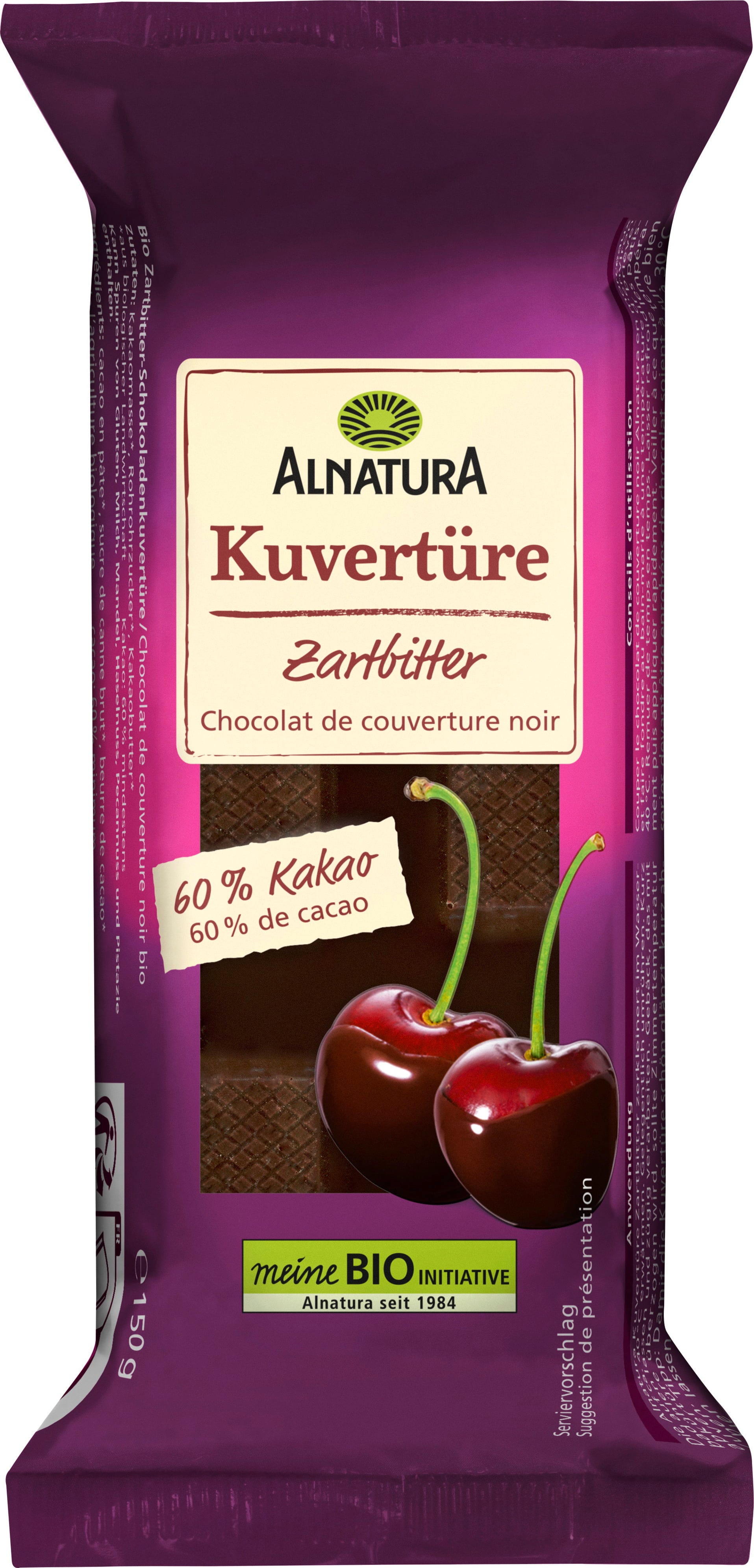 De Alnatura Biologische Pure Chocoladeglazuur met zijn fijn-bittere smaak geeft taarten, koekjes en dergelijke een bijzondere smaak. Deze pure chocolade heeft een cacao-inhoud van minstens 60 procent. Verhit en vloeibaar is hij ook geschikt voor chocoladefondues.