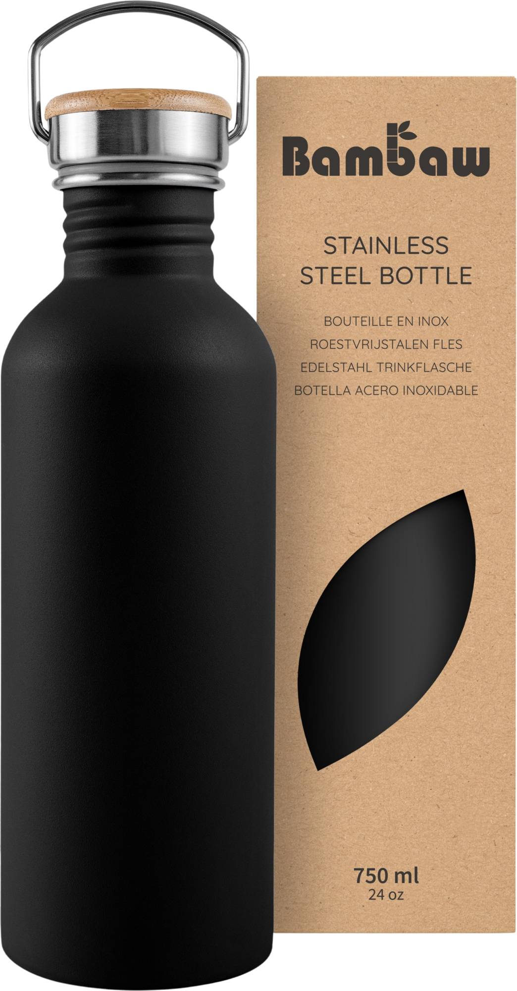 Bambaw Roestvrijstalen Fles, 750 ml, Jet Black
