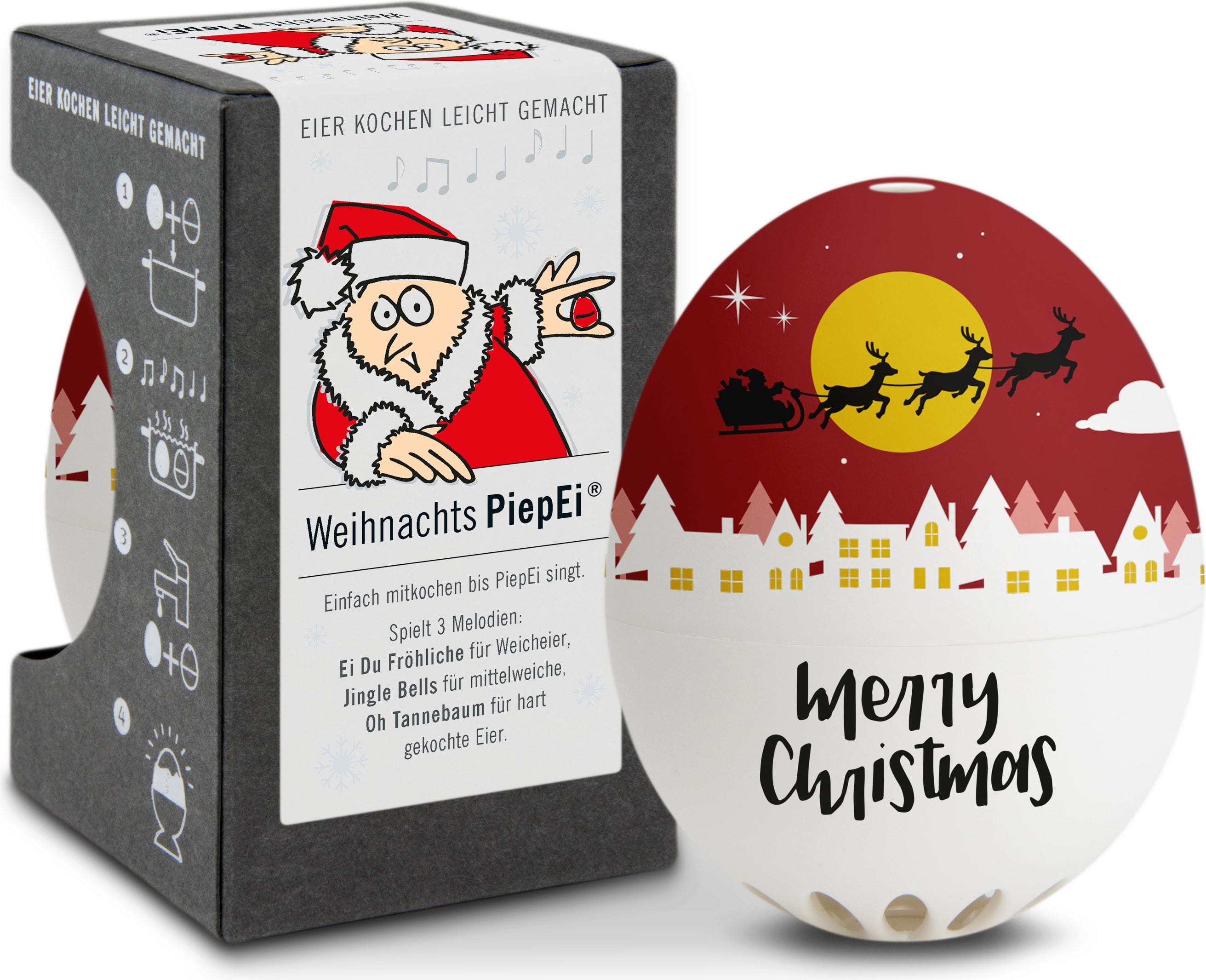 Iedereen kent het wel – eieren koken is een wetenschap op zich: de ene keer is het ei te hard, de andere keer te zacht. Het Merry Christmas PiepEi van Brainstream is de ideale assistent voor jouw perfect gekookte ei.