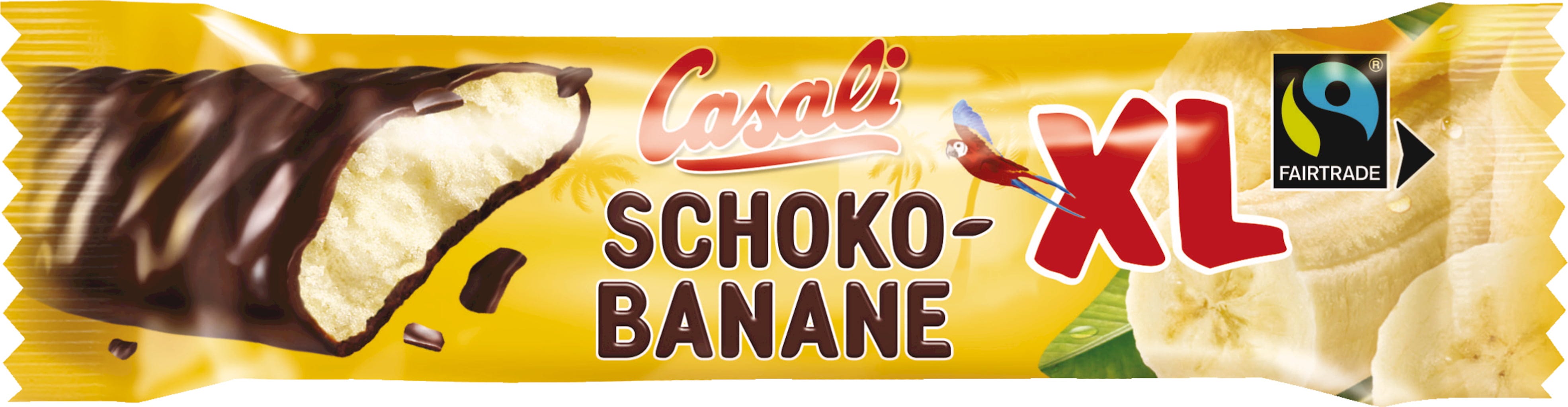 Voor iedereen die geen genoeg kan krijgen van de exotische, fruitige zoetigheden: De Chocolade Banaan van Casali in XL formaat. Smaakt naar de kleinere originelen. De praktische verpakking maakt hem handig als een reep en daarom ideaal om mee te nemen voor een zoete pauze onderweg.