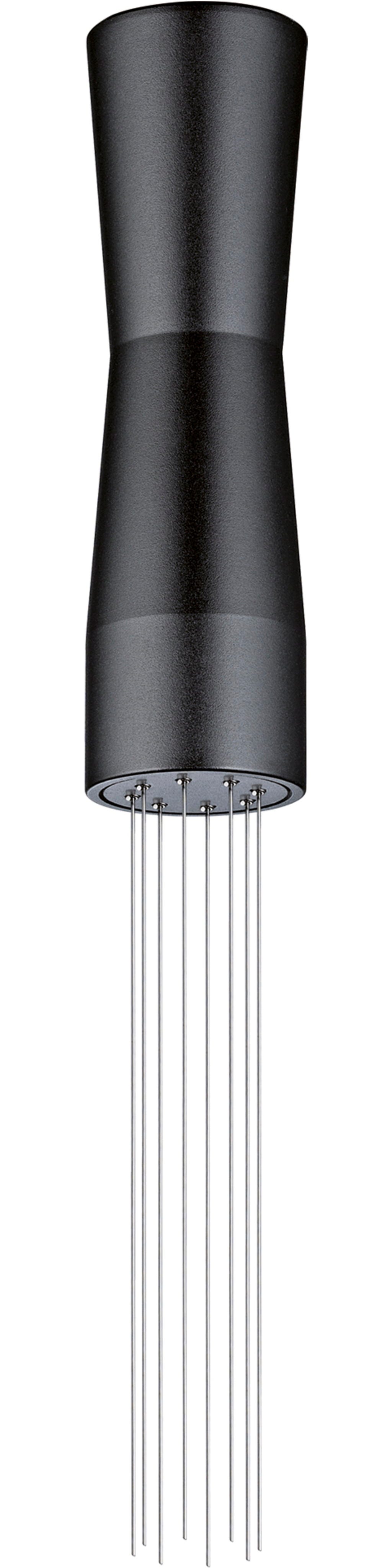 Zeg vaarwel tegen klonterig koffiepoeder en "Channeling"! De cilio BARISTA koffienaald is een onmisbaar hulpmiddel dat je espresso setup naar een hoger niveau tilt. Steek de naald in de gemalen koffie en roer in een ronddraaiende beweging van onder naar boven. Dit lost eventuele klontjes op en verdeelt het poeder gelijkmatig in de portafilter.