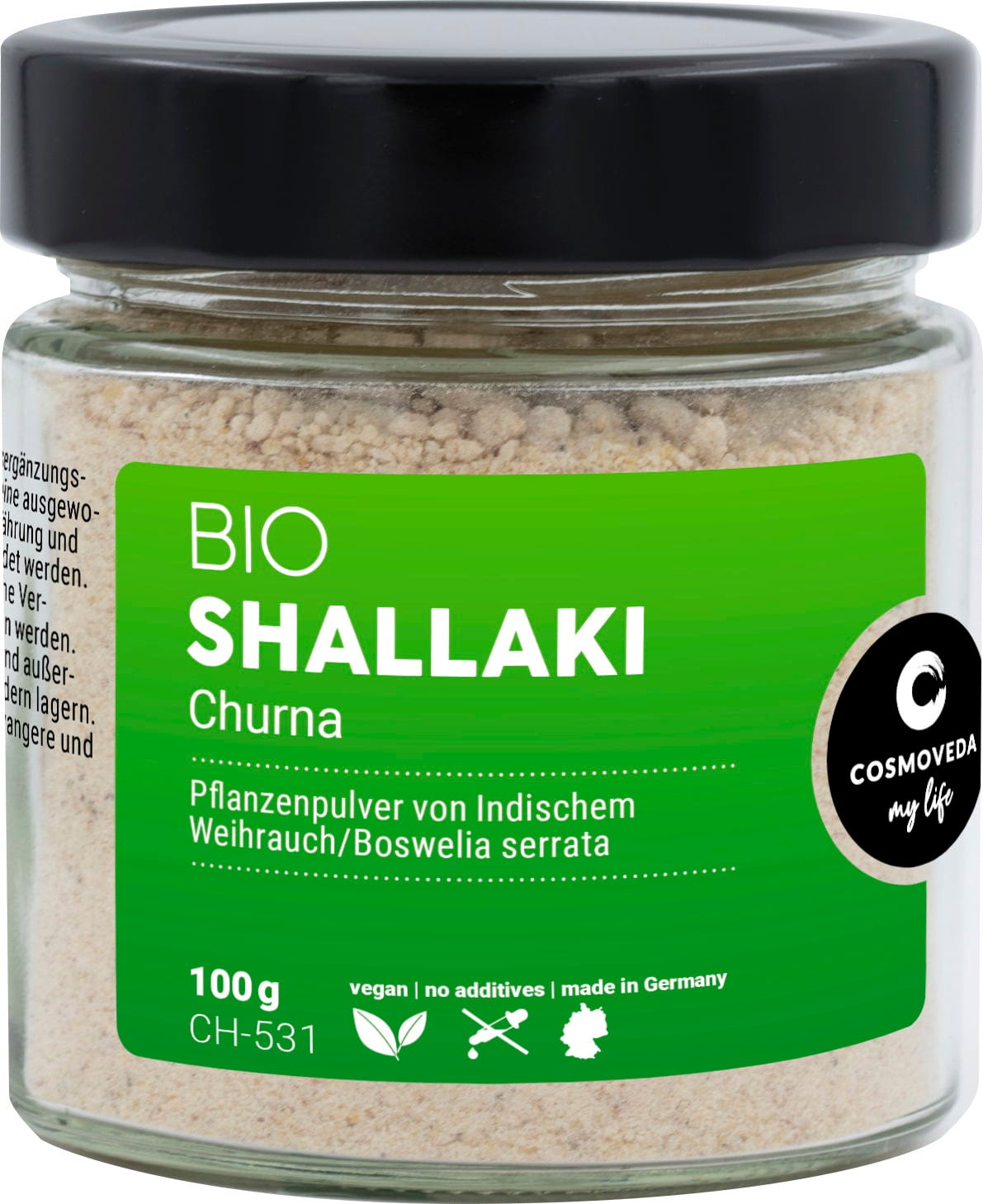 Shallaki - Boswelia serrata - is een hars-gevende boom die bekend staat als wierook met papierachtige schors en pollen tot 25 cm lang.De hars en schors worden gebruikt in de Ayurvedische voeding.