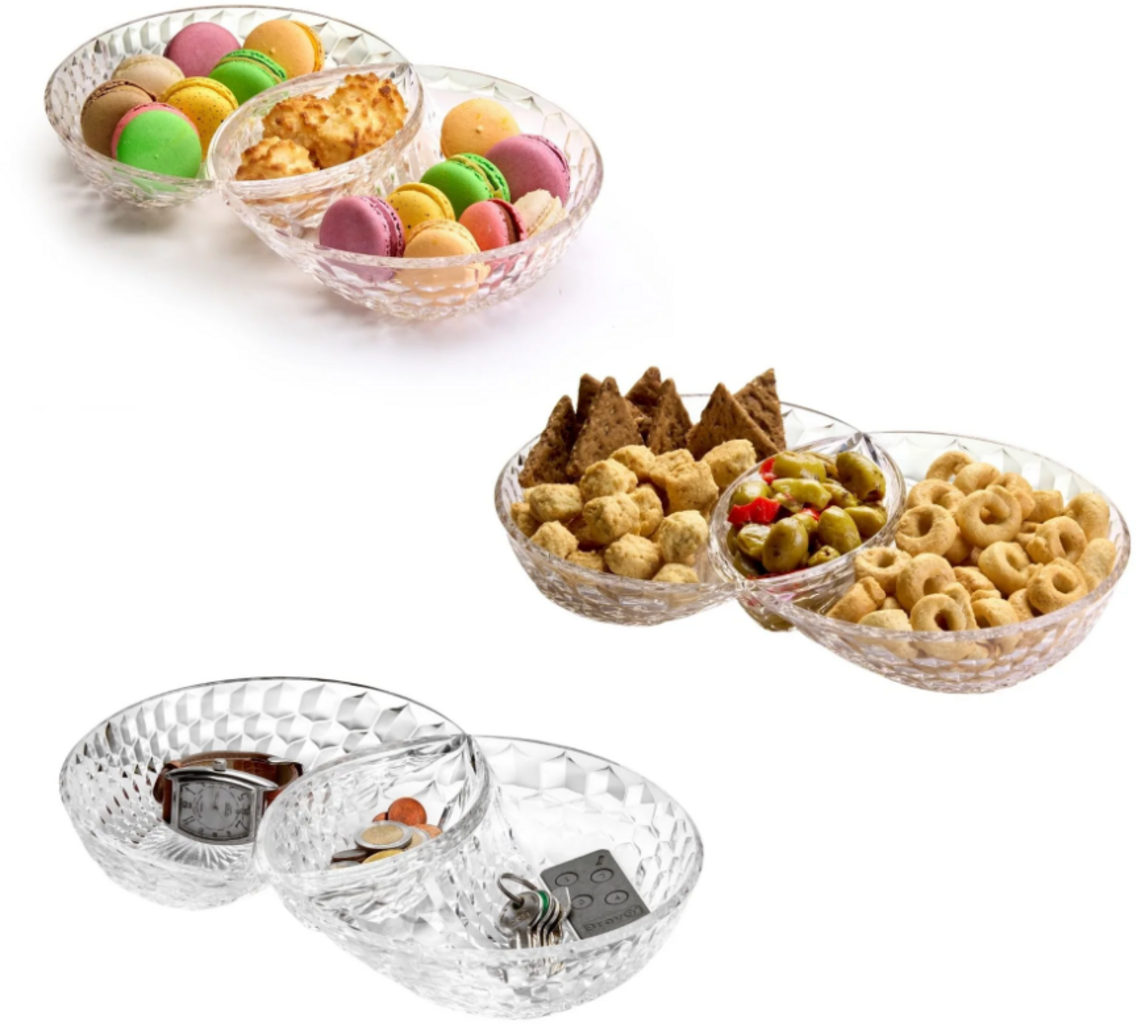 De voorgerechtenschaal „Vanity“ verenigt elegantie en functionaliteit. De drie aparte vakken maken het mogelijk om gevarieerd te serveren, terwijl het moderne, gewelfde design elke tafel een stijlvol accent geeft. Duurzaam geproduceerd en veelzijdig inzetbaar – perfect voor bijzondere momenten en sfeervolle gelegenheden!