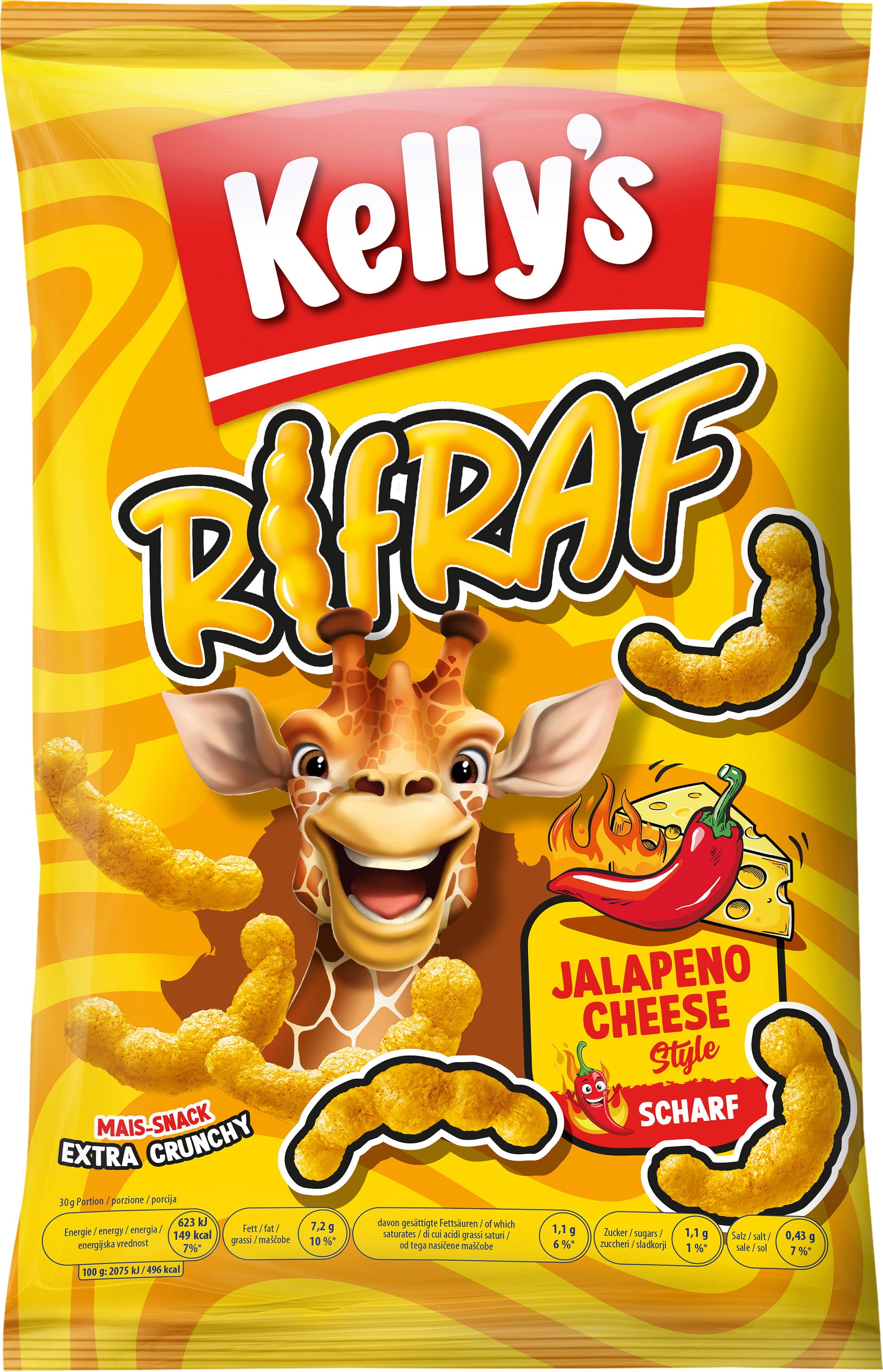 Met Rifraf van Kelly's haal je een heel speciale snack in huis! Rifraf is gemaakt van heerlijk maïsgriesmeel, is bijzonder knapperig en de innovatieve glimlachvorm brengt je in een goed humeur!