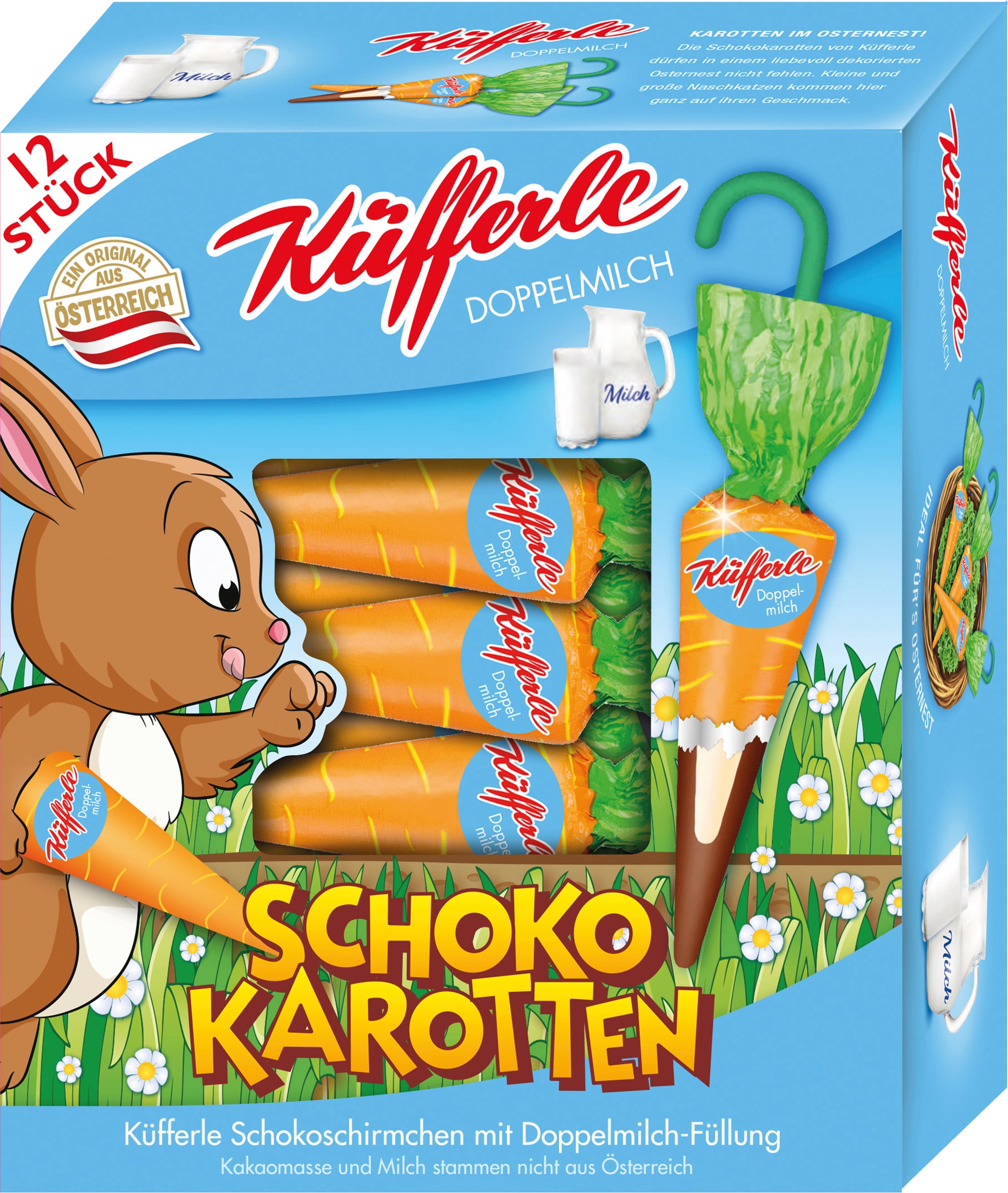 Hou je van dat beetje extra? Dan zijn deze Küfferle chocolade wortelen precies wat je zoekt. Onder het laagje klassieke melkchocolade schuilt een kern van zachte dubbele melkcrème, die zorgt voor een bijzonder romige smaakbeleving. Deze zoete blikvangers zijn perfect om in een paasmandje te leggen en zo voor een heerlijk zoet accent te zorgen.