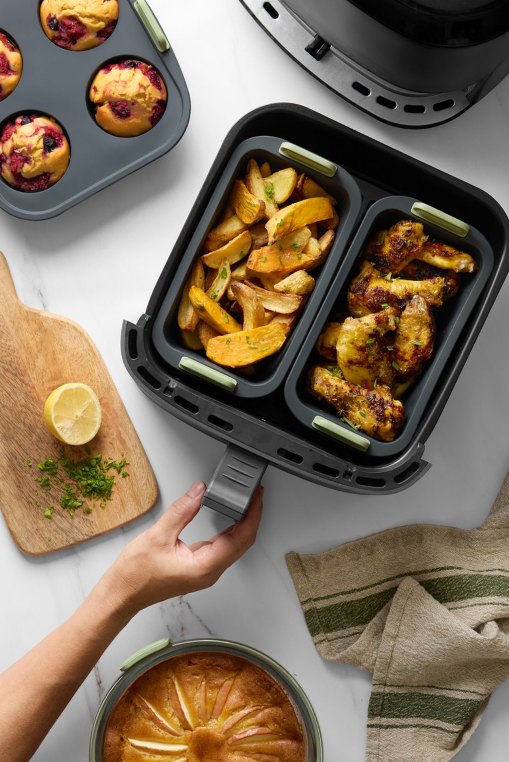 Heerlijke maaltijden bereiden was nog nooit zo makkelijk! Met de slimme siliconen mandjes voor je air fryer wordt alles nog makkelijker, zonder veel schoonmaakwerk. Gewoon in de vaatwasser na het koken en klaar.