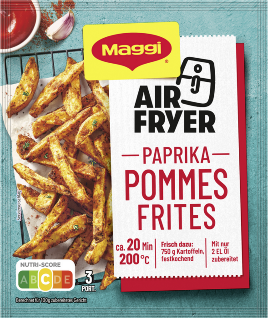 Met de Air Fryer Paprika Friet kruidenmix van Maggi tover je eenvoudige aardappelen als een pro om in knapperige, smaakvolle frietjes. De mix, speciaal ontwikkeld voor de air fryer, zorgt voor goudbruine, knapperige en toch zachte frietjes. Je maakt heerlijke frietjes met een harmonieuze paprikasmaak in slechts een paar minuten zonder extra vet.