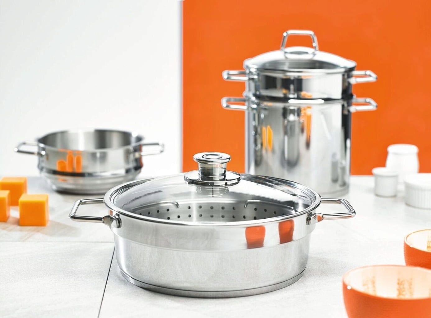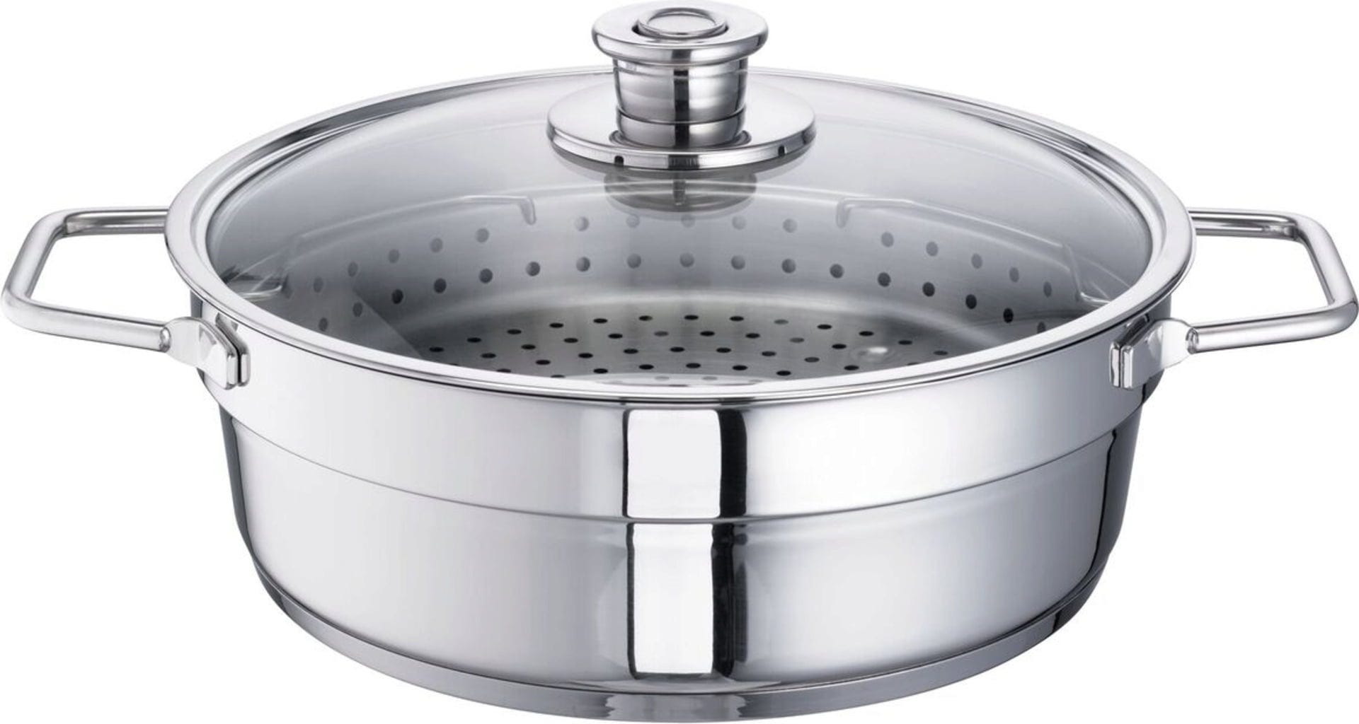 Multifunctioneel kookgerei dat een bijzonder milde en aromatische bereiding mogelijk maakt. Hiervoor voeg je eerst water samen met geselecteerde aroma-ingrediënten toe aan de pan. Zodra het water kookt, plaats je de verse ingrediënten op het stoominzetstuk. Zo blijven alle belangrijke vitamines en voedingsstoffen behouden.