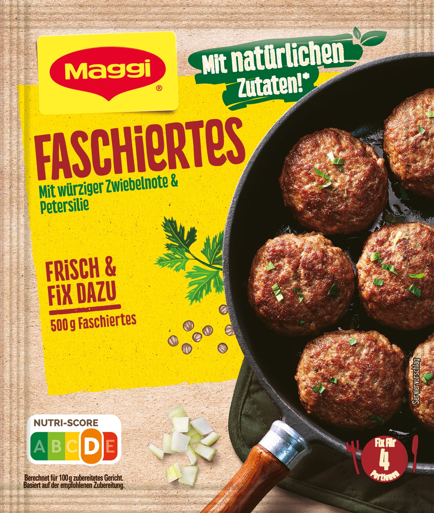 meng 500 g gehakt met de Maggi kruidenmix, vorm er pasteitjes van en bak ze in olie goudbruin.