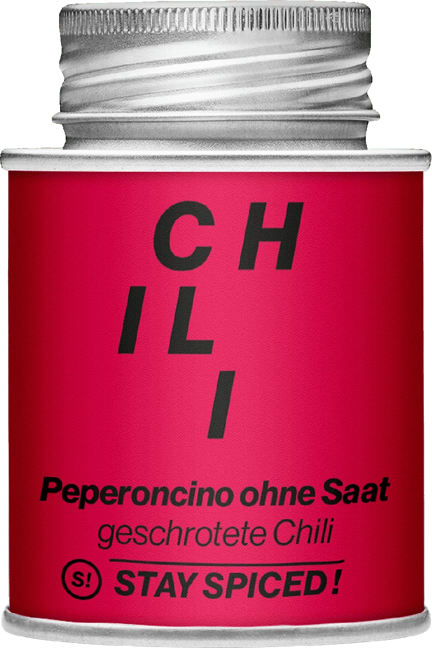 Voor iedereen die van pittig maar niet te pittig houdt: Voor de geplette, rode peper/peperoncino van Stay Spiced! de korrels en de fijne binnenmembranen van de peulen worden verwijderd. Hierdoor blijft de pittige, aardse, zoet-pikante smaak van de chili behouden, maar wordt de mate van kruidigheid aanzienlijk verminderd (niveau van kruidigheid 2 tot 3 op 10).