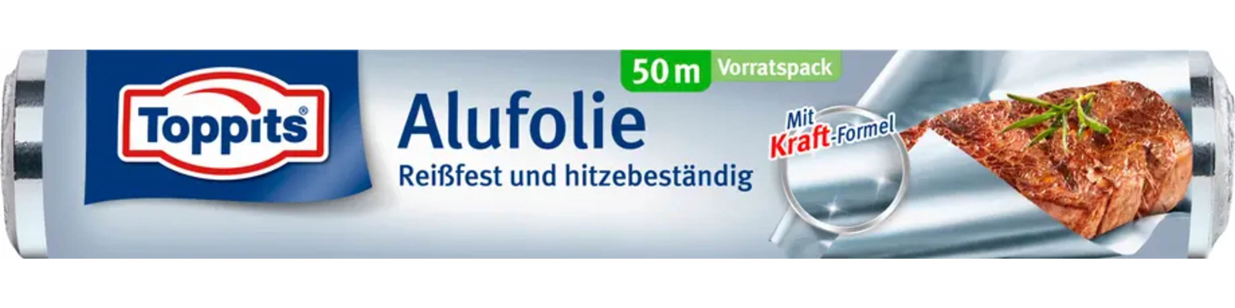 De Toppits Alufolie is een praktische hulp in tal van situaties in de keuken en bij het grillen. Dankzij de Kraft-Formel is de folie stevig, scheurvast en eenvoudig af te scheuren. Door de hittebestendigheid is ze niet alleen ideaal om gerechten af te dekken of in te wikkelen, maar ook perfect geschikt om te bakken, grillen of gerechten in de oven te bereiden.