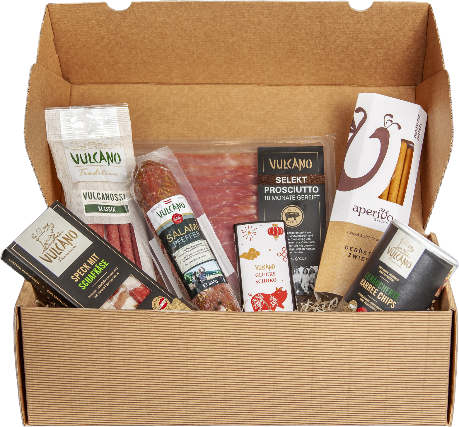 Met het Vulcano Feierlaune pakket staat niets je feest in de weg! Deze met liefde samengestelde set combineert hartige specialiteiten, fijne kaasvariaties en zoete hoogtepunten - perfect om te delen, van te genieten en op te proosten. Ideaal als cadeau of voor gezellige avonden met vrienden en familie.