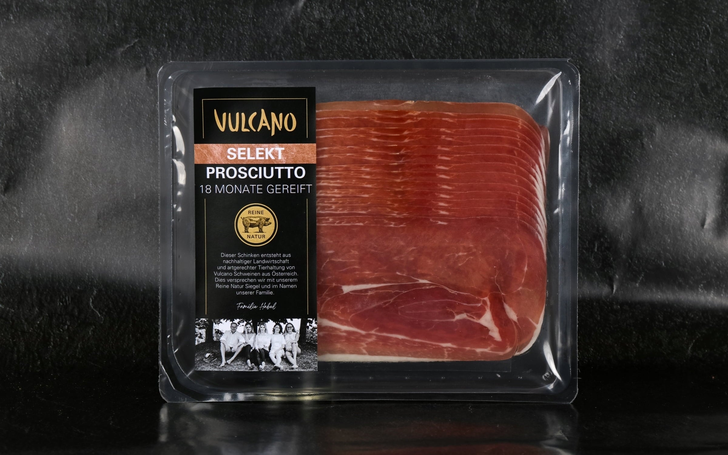 Het beste vlees, meesterlijk vakmanschap en veel tijd: dankzij deze hoekstenen in de productie van fijne rauwe ham bereikt Vulcano onvergelijkbare smaken die zelfs de meest veeleisende fijnproevers enthousiast maken. De prosciutto mocht 18 maanden rijpen en werd verfijnd met uitsluitend natuurlijke ingrediënten. De specialiteit komt al in fijne plakjes bij je thuis, klaar om te worden geserveerd aan familie en gasten. Stevig en voortreffelijk, rechtstreeks uit het Vulkanland van Stiermarken, een hotspot voor Oostenrijkse delicatessen!